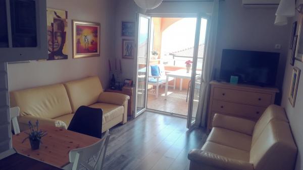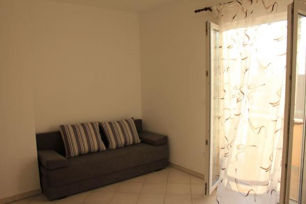 The apartment is located in a small quiet place Nemira near the beautiful town of Omis. The apartment has one bedroom with a double bed, a mini kitchen with a fridge, oven and stove, a living room with a sofa bed and a TV and a balcony.