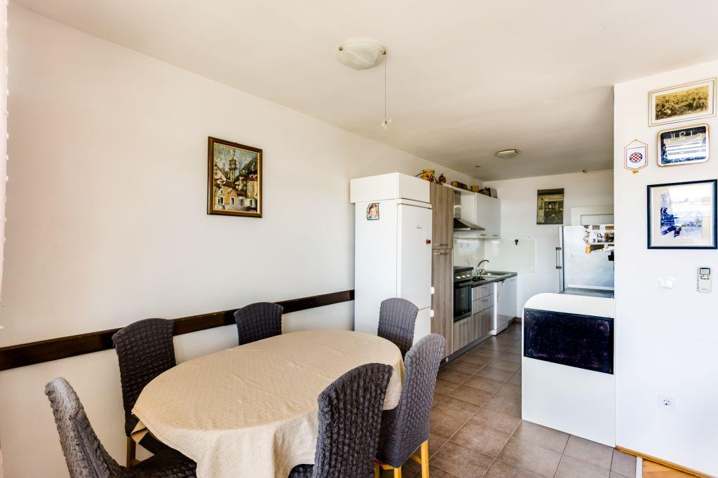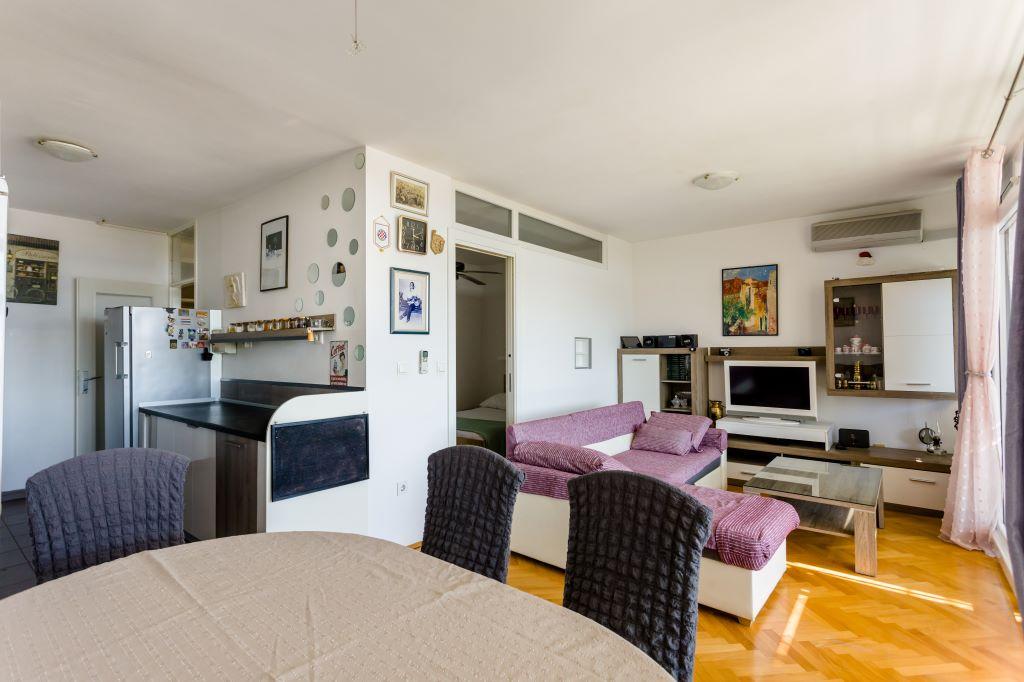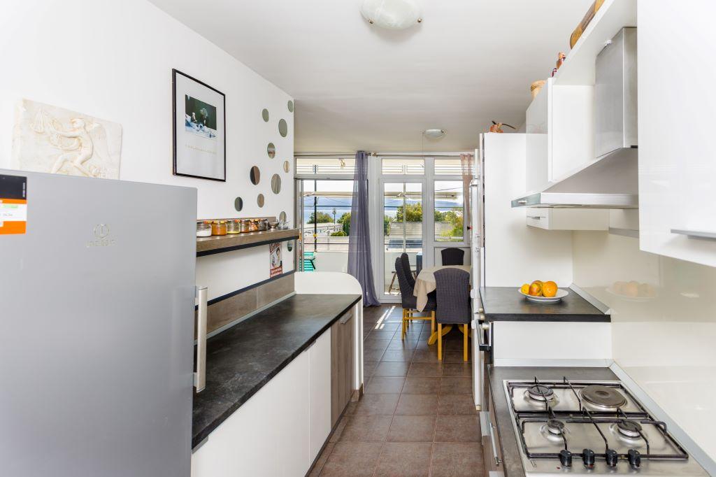 The apartment is located in the very center of Omiš and is located first row to the sea with a large sandy beach. The city center is only a few meters away, as well as restaurants, markets, pharmacies and all other amenities. It is also located near the Cetina River, so all the activities you can take advantage of are available to you (rafting, kayaking, zip line, quad tour, boat rides...). Parking is located near the building on a public area and costs €20/week. The apartment is spacious, has 3 bedrooms, a large living room with a large sofa bed, 1.5 bathrooms and a terrace. It can accommodate 7 people.