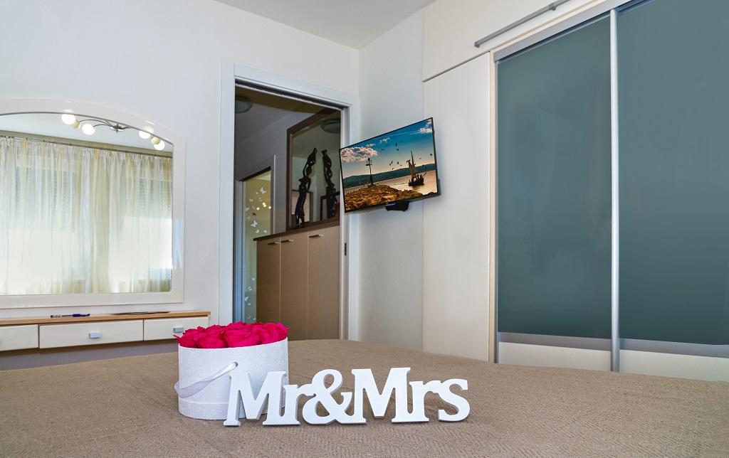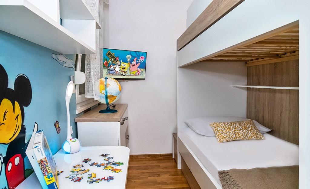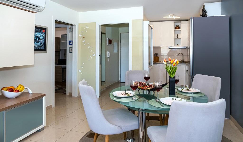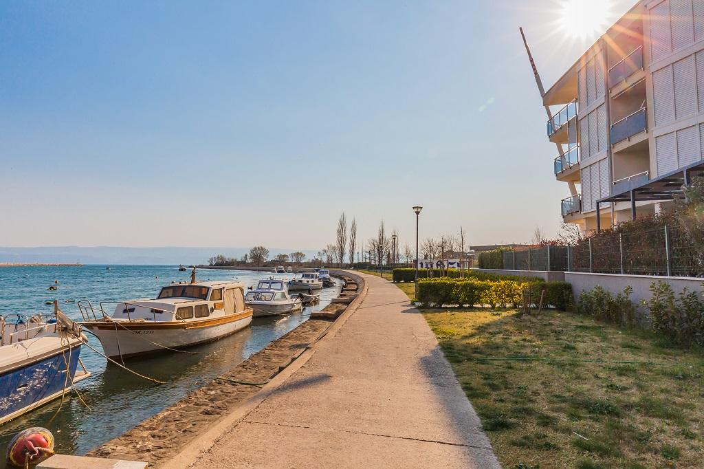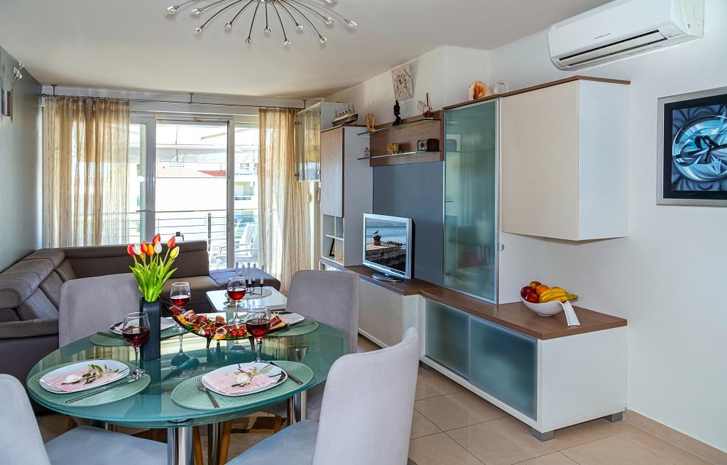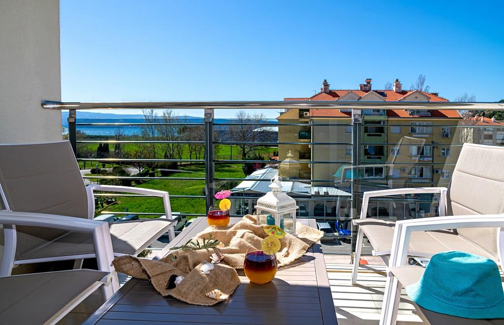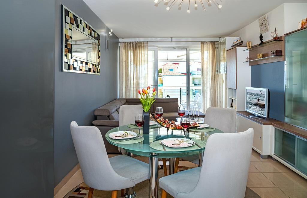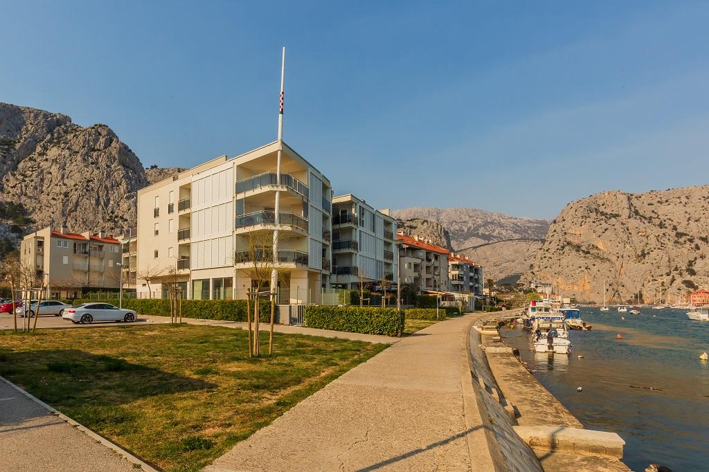 A new, modern apartment in the immediate vicinity of the Cetina River and the Adriatic Sea. With 65 m2 of living space, it can comfortably accommodate up to 4+1 people, and the balcony offers a view of the river and the Cetina estuary. The apartment is located on the third floor. The building has an elevator. The apartment consists of two bedrooms, one bathroom, a well-equipped kitchen with a dining area, a living room and a covered balcony with a view of the river. The first bedroom has a large bed (180 x 200) for 2 people, nightstands and storage space for your clothes and luggage. The second bedroom has two beds (90 x 200) for 2 people, nightstands and storage space for your clothes and luggage. Both bedrooms are bright and have lots of natural light through the skylight. The bedrooms have air conditioning. It consists of a living room and a dining room in one space, and a very modern, open kitchen. There is also a new kitchen with the latest appliances, including a 4-burner electric hob, electric oven, fridge freezer, kettle and all the crockery needed for self-catering. Right next to the kitchen is a dining room with a table for 4 people. There is also a living room with a TV, an elegant sofa bed and a coffee table. It has TV and Wi-Fi. Cooling and heating in the living room and kitchen with air conditioning. Glass sliding doors in the living room open directly to the balcony. The balcony has a panoramic view of the river and the sea. If you come by car, there is a public city parking lot around the building. Our apartment is 500 meters from the town of Omiš, which is actually only a 5-minute walk from our place. The sandy beach (500 meters away) is a few minutes' walk away.