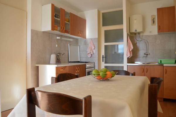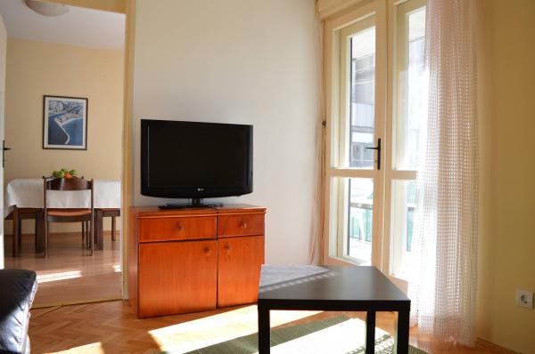 Apartment Nera is located in a quiet area of the town of Omis, in the shade of a small city park. The facility is located 200 m from the center and colorful restaurants, old tavern, the sandy beach and the starting point for excursions .. Fully furnished apartment located on the first floor of the residential building with free parking. It contains two bedrooms with double beds, a spacious kitchen, living room (can be converted into a bedroom) and two balconies. The use of air-conditioning and internet included in the price.