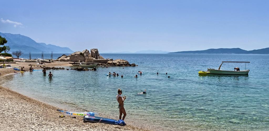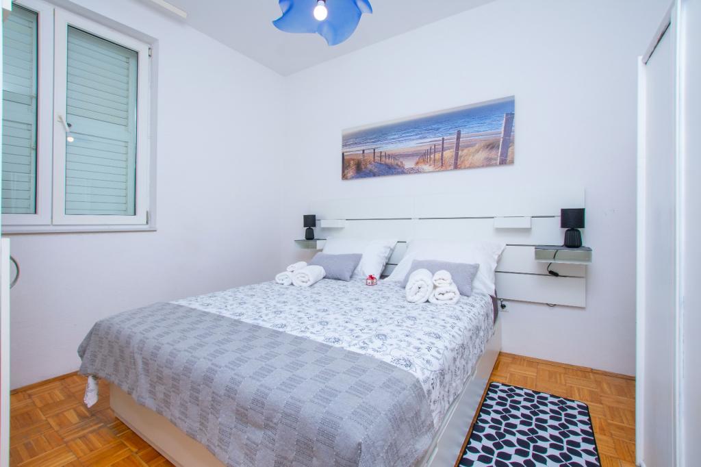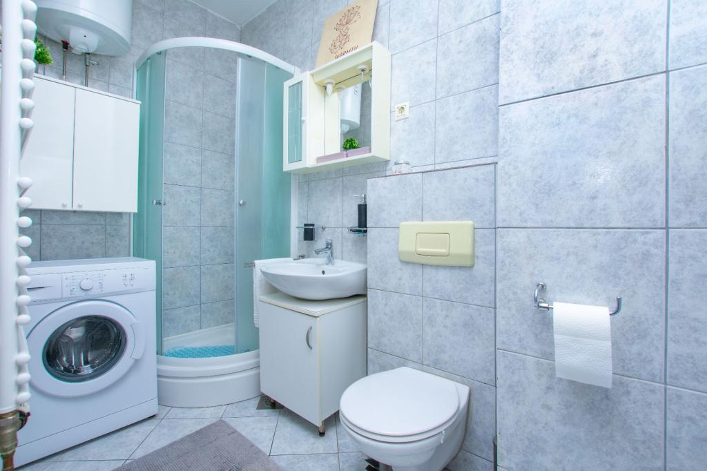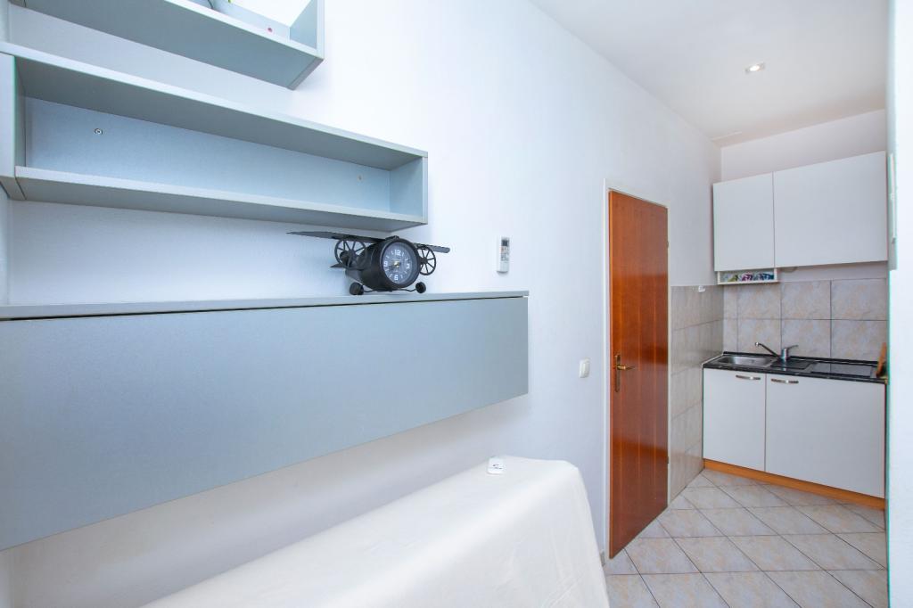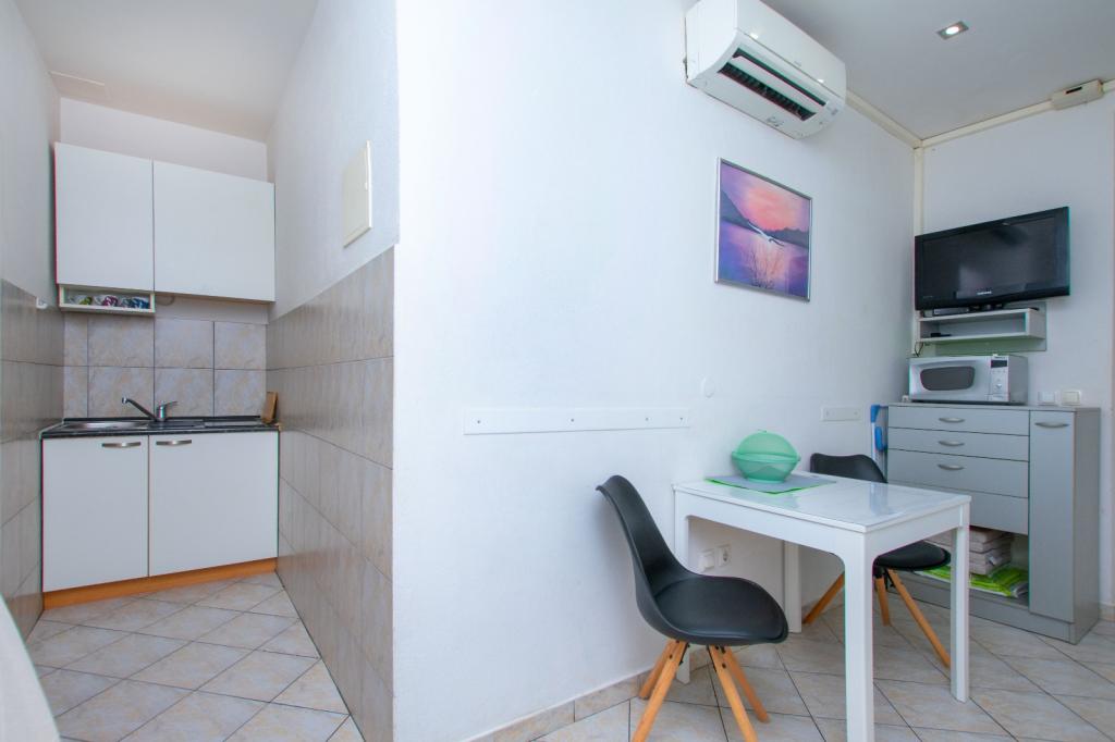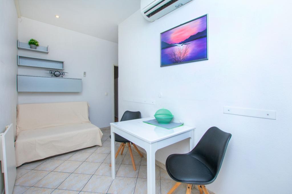 Apartment ''Piccolo'' is located 5-10 min. walk from the old town of Omiš, and about 5-7 min. walk from the beach (Velika plaža). It is 25 m² in size and consists of a living room with a dining area and a small kitchen, a separate bedroom and a bathroom with a shower and a washing machine. In the well-equipped kitchen, guests will find a microwave, refrigerator, stove, coffee maker, kettle and dishes. The apartment was partially renovated in 2024, is air-conditioned and has a seating area with a TV. It is located in a residential building, high ground floor - separate entrance via the staircase in the south of the building. Free parking and wi-fi are provided for guests (included in the price). Bed types: 1 double bed and a sofa bed. Number of people: 2.