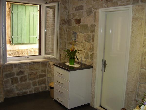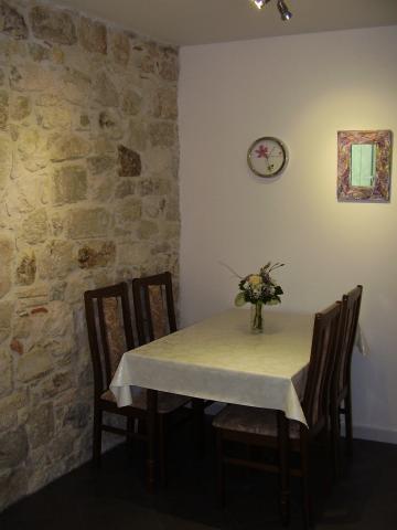 Zorica apartment located on the first floor of a traditional Dalmatian stone house in a quiet, historic center of Omis, overlooking the mouth of the river Cetina in the Adriatic Sea. Located just a few minutes walk to the central city beach, numerous restaurants, pubs and cafes and close to the starting point for various excursions and activities (rafting, canyoning, zip line, boat trips along the river and the islands ...), is a pleasant apartment Zorica and romantic place to enjoy your vacation. A full-size kitchen, electric stove with oven, refrigerator, dishwasher, washing machine, water kettle, all utensils and dishes for preparing and serving food, table 4-6 - TV hour. receiver, wifi internet, separate bedrooms (one double bed and one with 2 x single bed).