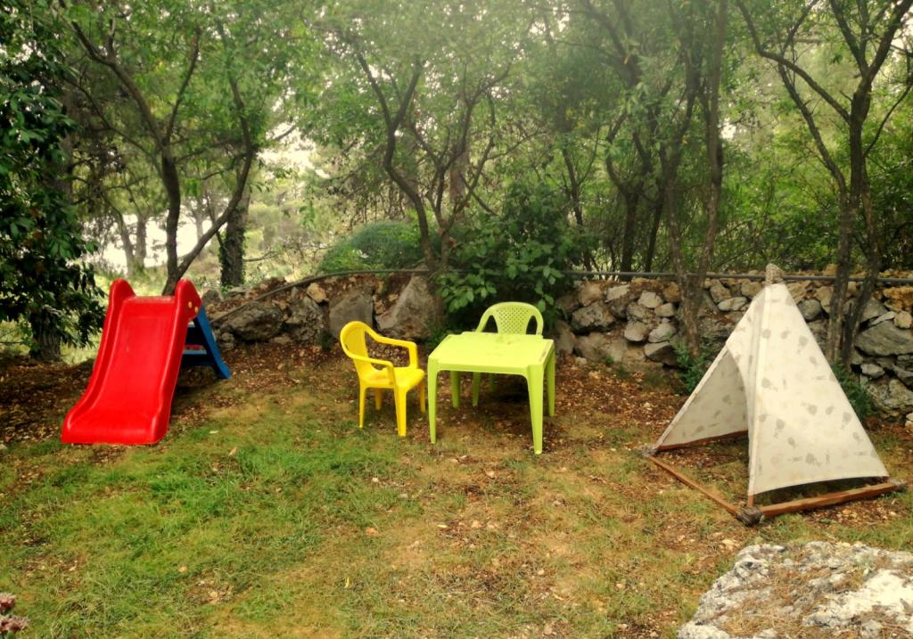 Silence, pine, clear sea. It’s not for stroller rides and it’s not for those who can’t walk more than 50 feet uphill. Each apartment has a separate entrance.