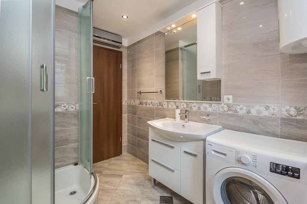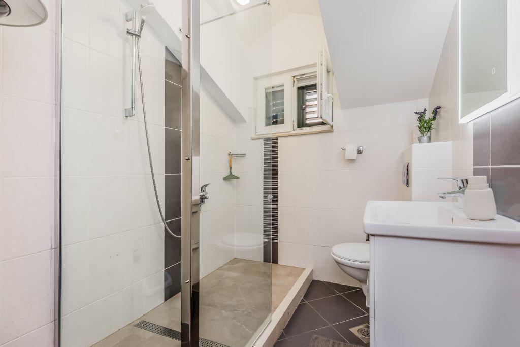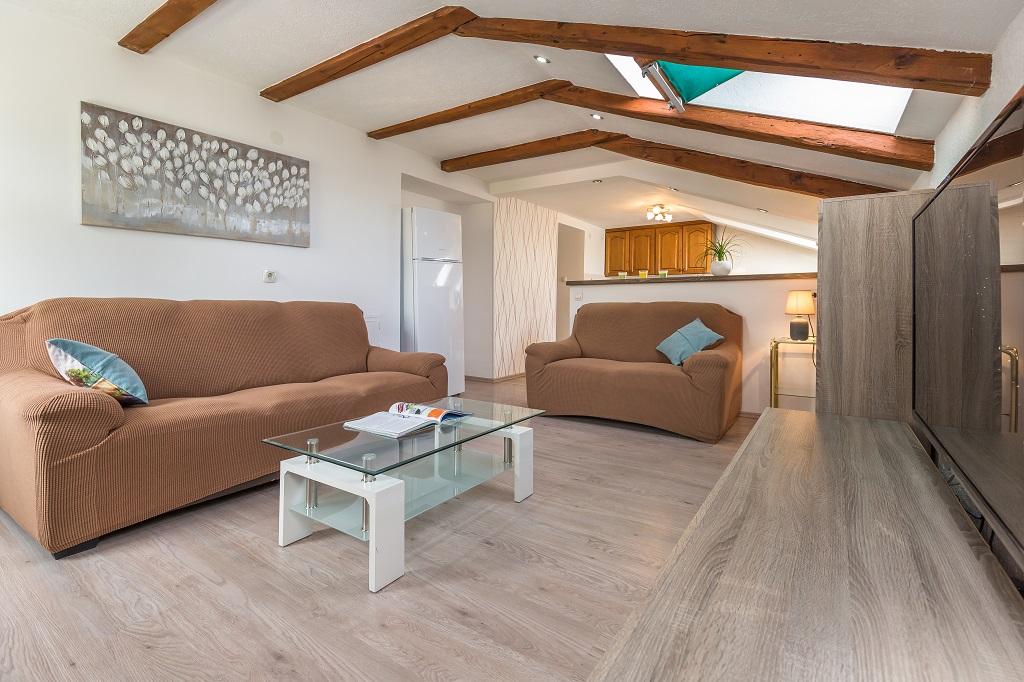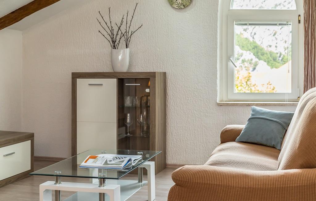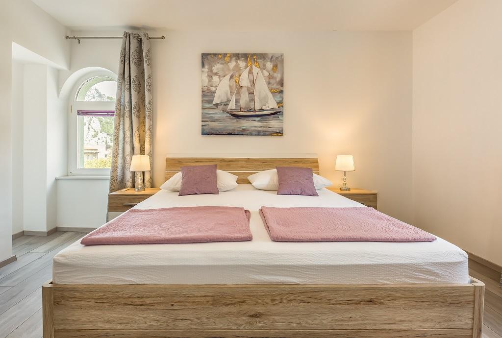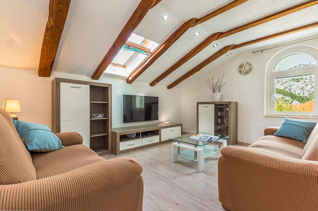 Apartment 1: The apartment is about 90m²: living room with SAT-TV, couch; bedroom with double bed; bedroom with two separate beds; fully equipped kitchen and dining room; bathroom with shower and washing machine; and a private terrace with seating. Internet Wi-Fi, air conditioning. 20 m² private terrace has a beautiful view of the Adriatic Sea, the beach, the old town of Omiš. Free parking. Apartment 2: The apartment is about 90m²: living room with SAT-TV, couch; bedroom with a double bed and a bed for 1 person; bedroom with double bed; fully equipped kitchen and dining room; bathroom with shower and washing machine; and a private terrace with seating. Internet Wi-Fi, air conditioning. 20 m² private terrace with grill, view of the old town of Omiš. Free parking.