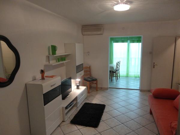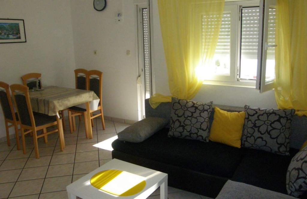 Adriatophouse House is situated in a nice and quiet place, just 50m from the pebble beach plane.Do go upstairs. The house is under the main road and to it can be reached by car. The apartments have 1-2 bedrooms, living room with sofa, fully equipped kitchen, bathroom with shower, satellite TV, air conditioning and a balcony or terrace with pgoledom view. The apartments are new and modern furnishings. Ideal for families with children.