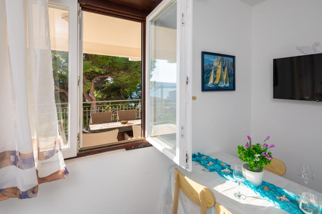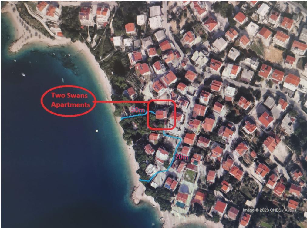 Apartment is located in Nemira, about 3km distance from the center of Omiš. Distance from the sea is only about 70m. Nearest restaurant is 30m away and nearest grocery store about 40m.