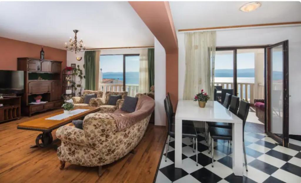 The house features two XXL apartments: 140 m2 4-bedroom app (located on the first floor. It features a private entrance, 4 bathrooms, big living room, dining room, 2 kitchen and 2 balconies with spectacular sea views, Wi-Fi, parking and air conditioning ) and 130 m2 two-level 4-bedroom app ( located on the second floor. It features a private entrance, a kitchen, a living room, a dining room, two bathrooms, a large balcony with spectacular sea views, parking, Wi-Fi and air conditioning). The house is perfectly located 250 metres from the nearby beach, less than 1 km from Balića Rat Beach, 4.3 km from Omiš centre and 28 km from the centre of Split. The house features a family-owned restaurant "Espana" on the ground floor where you can enjoy in traditional cuisine. There are two supermarkets at your disposal, one is next to the house and the other is 20 m from the house. There is also a coffee place next to the supermarket and two ATMs. The nearest beach is at a 5-min walking distance.