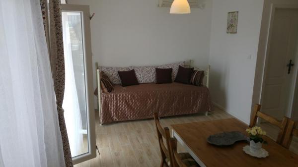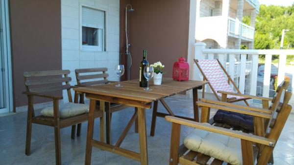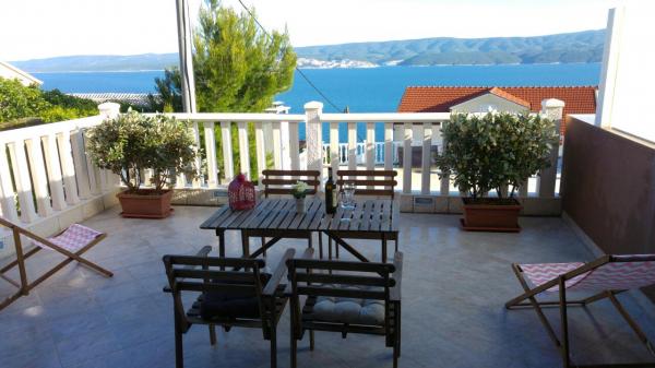 The apartment is located in a quiet place. . The apartment is not newly built and nicely furnished. consists of cc45m2 the living area and a beautiful terrace cc35m2 with a view of the sea and islands. . away from the sea cc 900m. . also from Omis cc 5 km