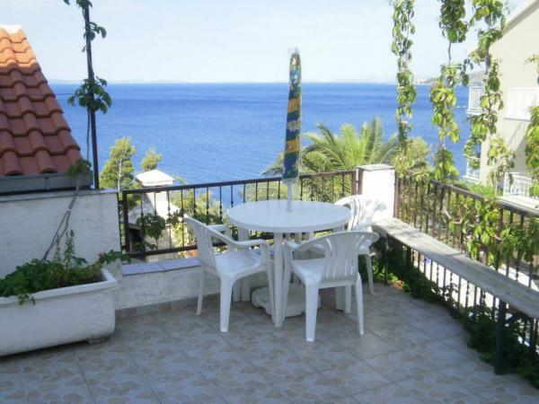 MIRANDA APARTMENTS are located in a pleasant Mediterranean setting of an affordable location in Nemiri in the east of Omis. There is a half-hour walk to the town center, a 2 km long sea-side road. The apartments are located in a two storey building on the steep coast, only 80 m from the sea. To the beautiful pebble beach comes the stairs. We offer our guests a peaceful and friendly environment and accommodation in five double studio apartments, one two-bedroom studio apartment for 4 persons and one apartment 2 plus 2, with a total capacity of 16 plus 2. Apartments are fully equipped and have their own parking space and internet access.