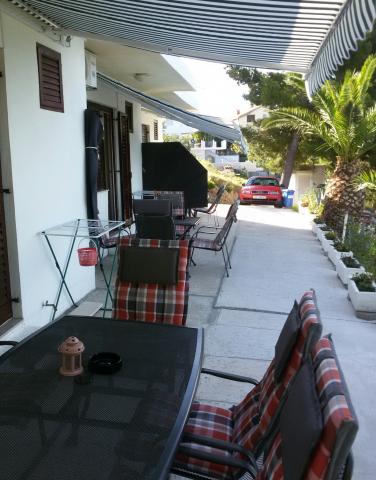 Apartments Roma are situated in the village station, at Great Harbor 11, on the Riviera, 3 km southeast of Omis and 25km from Split. Apartments are far from the beach about 100m, and from the center-shops, restaurants and other facilities is a distance up to 100m. Along the house there is a parking lot, grill, outdoor shower with large terrace around the apartment is a lot of greenery. Pebble Beach is the length of one kilometer of lots of trees-tamarisk. The sea is crystal clear, and the coast. There are trips to the islands of Brac and Hvar and along the canyon of the river Cetina, and various other sports Realization. Bus lines to Makarska-Omis-Split are everyday.
