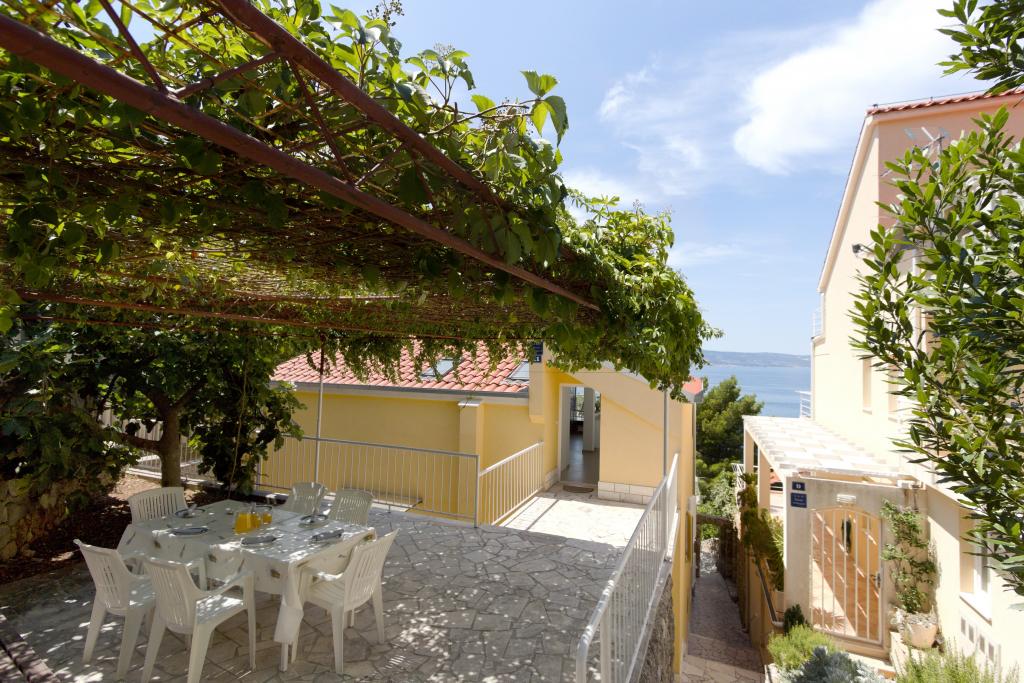The house with three apartments is located in Nemira, 2km from the city Omis. There are steps that lead directly to the beach, only a minute walk from the apartments. All of the apartments have access to the barbecue area, and all three have spacious terrace/balcony overlooking the sea. In front of the house is a parking space for the apartments. Coffee bar, restaurant, market and a bakery are just 5min walk from the house. The first apartment can accommodate 5 +1, the second one 4+ 1 and the third apartment 2 +1.