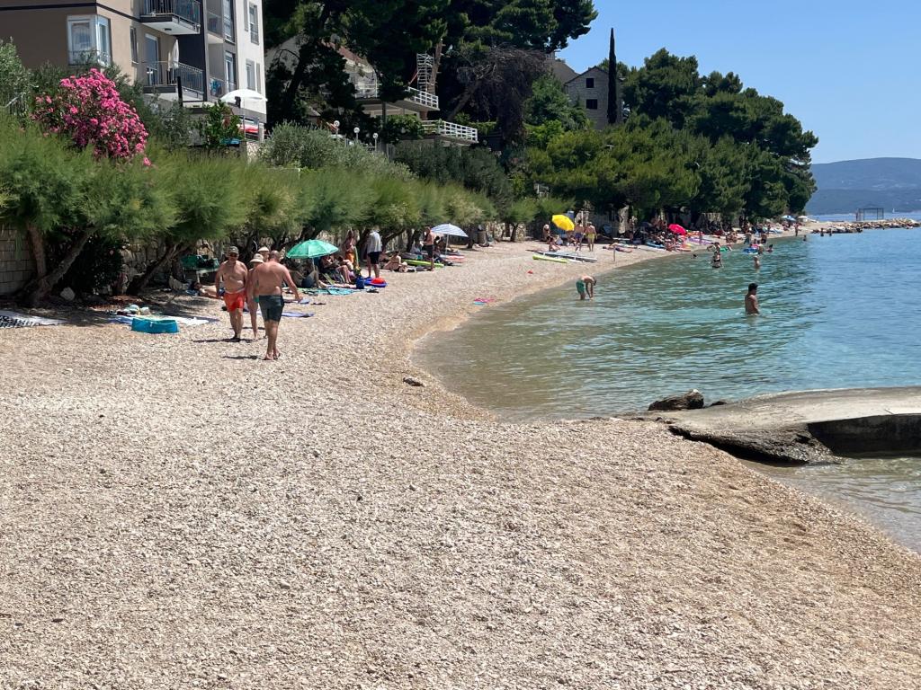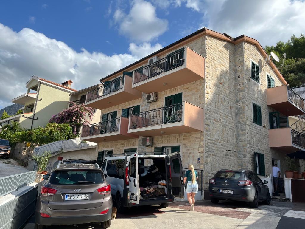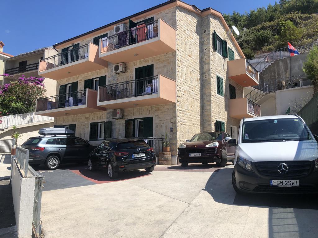 New beautiful stone comfortable sunny modern villa with all modern amenities located on a large property. Ideal for a family with children. Each parking space is specially marked with the color and number of the apartment to which it belongs. The nearby pebble, 3 km long beautiful beach full of swimmers with countless amenities is located only 150 meters from Villa Borzic. There is a quiet road along the sea to the city center of Omiš, so guests practically do not need to drive a car during their stay. In Omiš there are countless amenities from monuments to pirate battles, rafting, climbing, ZIP line to a children's amusement park. Omiš is a very popular destination for families with children who will never be bored. The owner of the property Ivan Borzić has 30 years of work abroad and is always at your service because he lives in the same building. Welcome