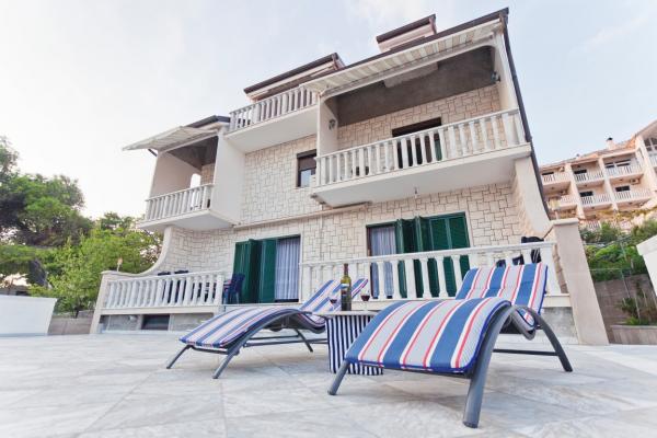 Luxurious apartments for a pleasant family vacation. Each apartment has several separate rooms and bathrooms and regardless of size provides each person with sufficient privacy! Beautiful view from all apartments to the sea and the island of Brac. A large ready-to-use terrace equipped with large tables and a barbecue will make your summer evenings unforgettable. We also have an outdoor shower for a quick salt shower. Just 3 minutes walk to the first beach and the sea. The beach is suitable for children and adults, abounds in families in good spirits who enjoy the sun and the sea.