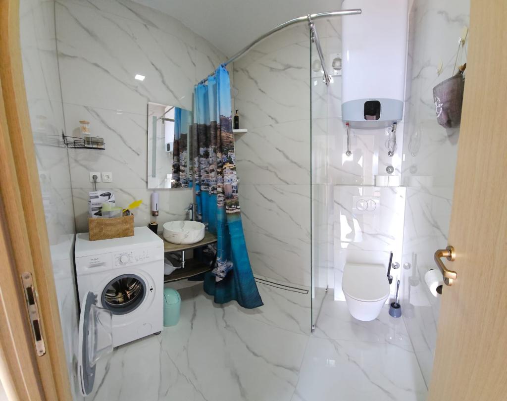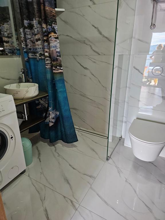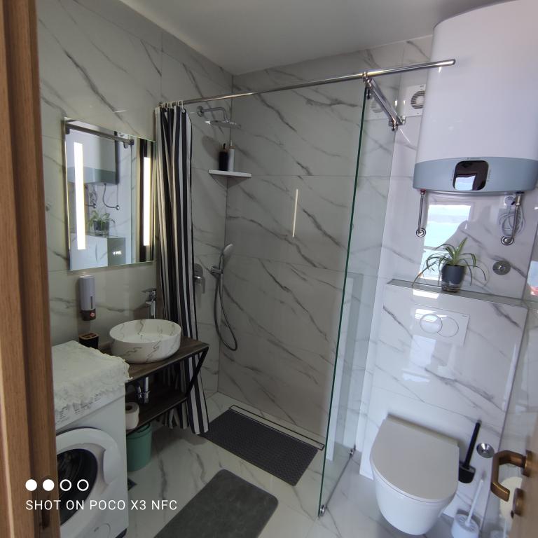 A charming place with a beautiful view of the sea. The beach is not so big below the house, so it feels like a private beach. There are also larger ones nearby. Great place to quieten - you can't hear cars. From this place it is close to Omis, but also to Marusica, where you can buy very good olive oil. Sarah is a very positive woman, smiling and willing to help. The posted photos reflect the full appearance of the apartments - it is clean and nice.