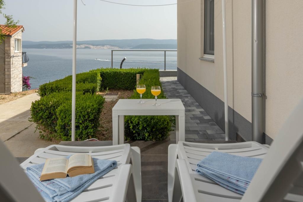The apartment is located in a very beautiful place. It has a huge terrace that offers great views of the sea and the island of Brač. Apartment as described, equipped with everything necessary. There is also a barbecue on the terrace. The apartment is managed by a very nice owner. I recommend it to everyone, especially families with children due to the distance to the sea. This is where you can relax - we will definitely come back to this apartment