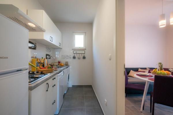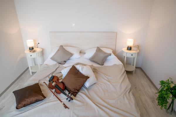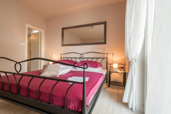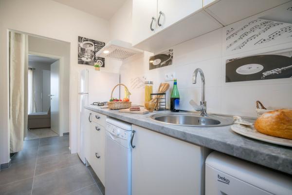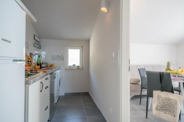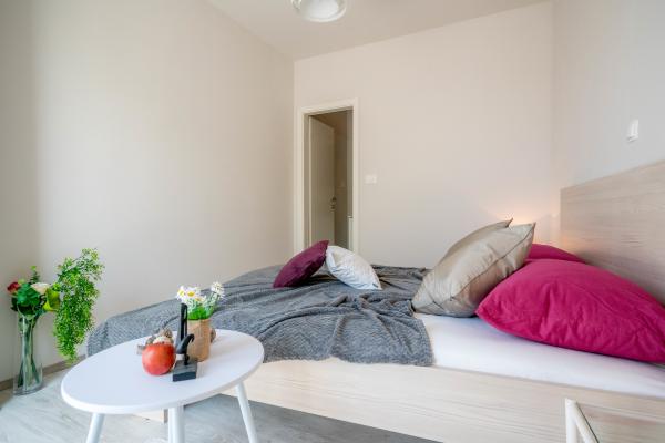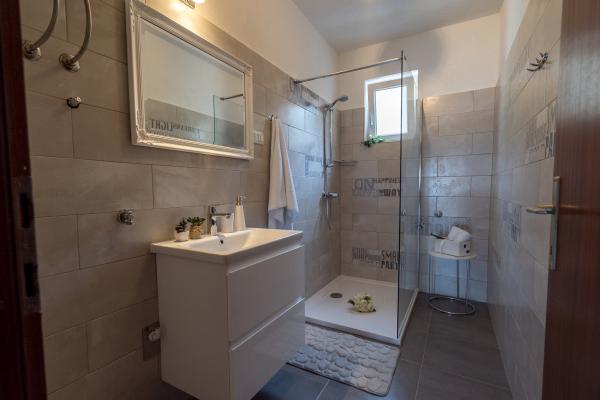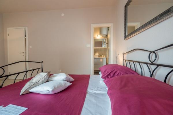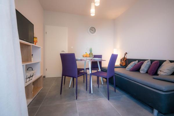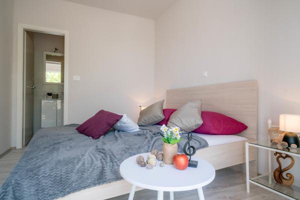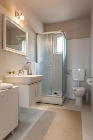 Our apartments are the ideal place to relax, far from the hustle and bustle of modern life. Suitable for couples and families with children, will delight you with its modern and elegant appearance. Our guests have the shared kitchen, Wi-Fi and barbecue. Each room has its own bathroom and its own small fridge or minibar and air conditioning. The kitchen is fully equipped and modern. Parking is available next to the house. We are located at one hundred meters from the sea, third row. Pebble beach is 3 minutes, and can be reached by stairs. Shop and restaurant are 150 meters from our Villa. The house is situated below the main road and do it can be reached by car. Parking, use of air conditioning and WiFi are included in the price. Attention: availability calendar is updated regularly, so please do not send queries for terms that have been marked as unavailable.