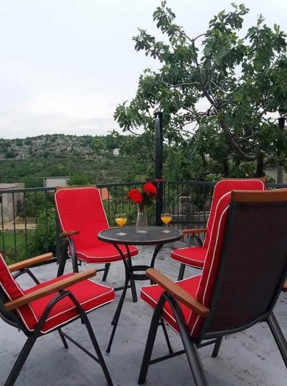 Villa Musini dvori is located in the peaceful surroundings of the rural idyll of Kostanje. Far from the noise of the city, you will be awakened by the birdsong and the relaxing atmosphere. The villa is located half an hour away from Split and you only need a 15-20 minute drive to the beach. Just a few minutes' walk from our Villa you will find cycling and hiking trails. The proximity of the Cetina River offers a rich selection of outdoor activities such as canoeing, rafting, fishing, swimming and much more. Our Villa is a type of old stone house that contains an authentic and traditional Dalmatian tavern where you can enjoy the grilled delicacies available to you. The house also consists of 2 large double bedrooms, a living room with a sofa bed for 2 and another sofa for 1 person. Wi Fi internet for all our guests..Bathroom with shower and washing machine. A large outdoor terrace with a view of the rural idyll and greenery. Come to us and experience a real vacation in a relaxing home atmosphere