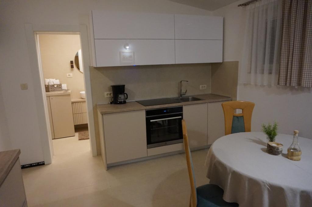 This is one of the apartments you could wish for, a quiet location, parking in the yard, the sea is approximately 250 meters away, and you can go down a path through a small forest to a beautiful rocky beach, where the sea is clean and most importantly, there are no crowds. It is not recommended for small children because there is no gentle descent into the sea. The apartment is sparkling clean, tidy and you can see at every step how much the hosts take care of each guest, whatever you need there are unobtrusive hosts who will do their best to ensure that you have everything you need for a good vacation. In a word, this is a wonderful apartment for a peaceful and quiet vacation.