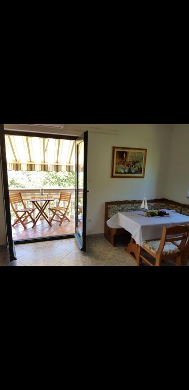 Late nature, beautiful and clean apartment, huge yard with shade very suitable for a family with children, facilities for children, the sea right next to the house, pleasant and dear people, definitely to recommend if you want peace and wonderful vacation with your family