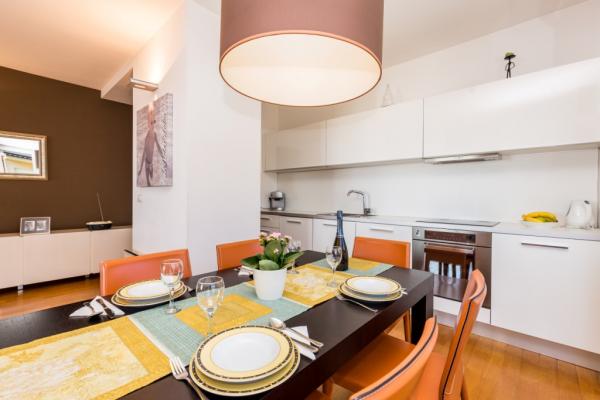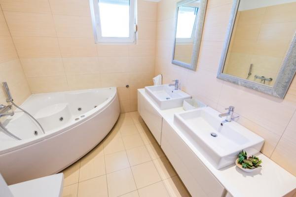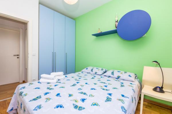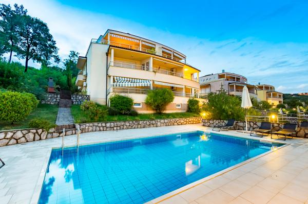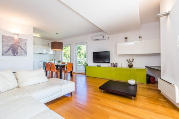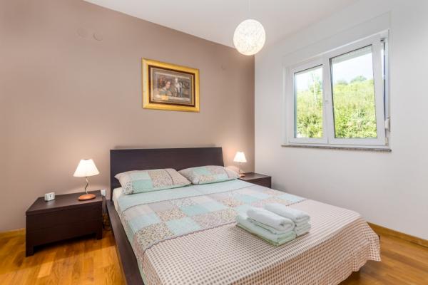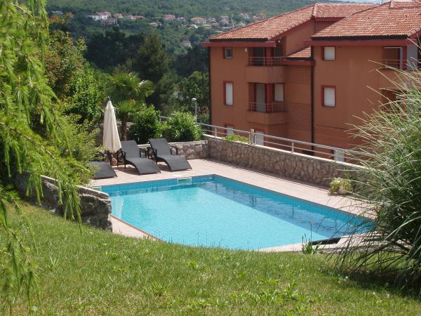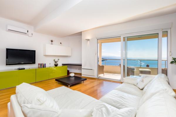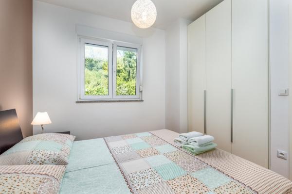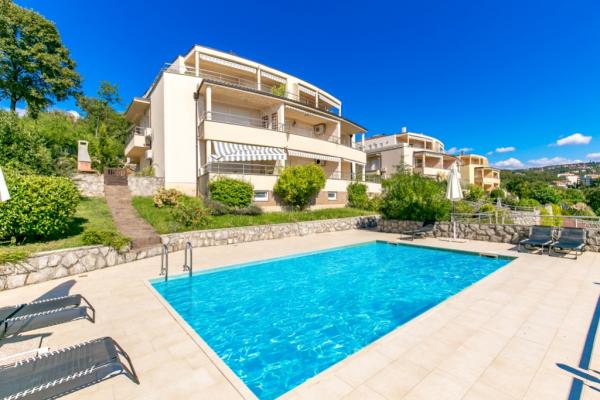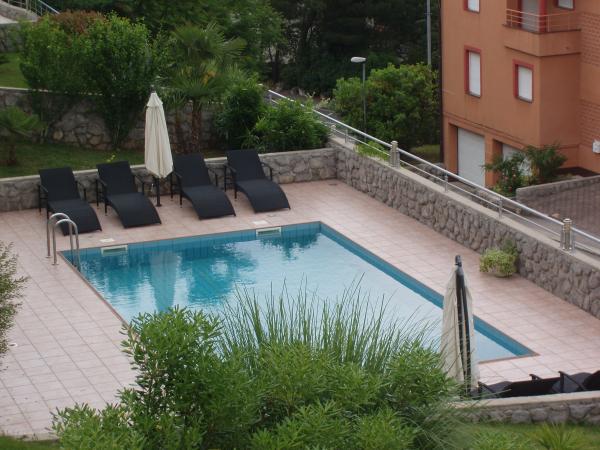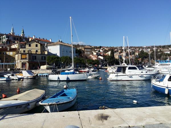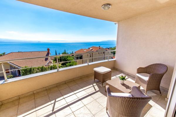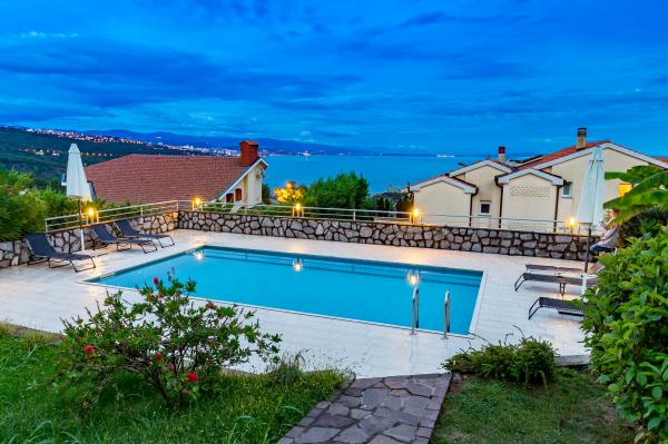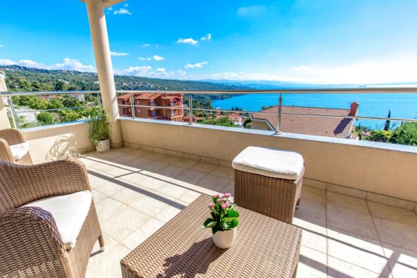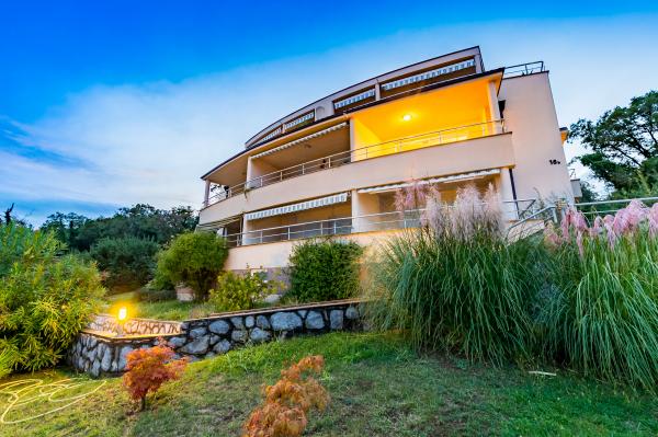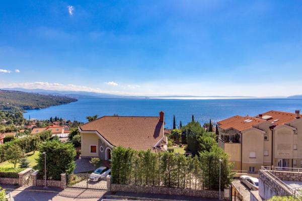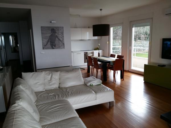 The apartment is located in a quiet part of Opatija only 400m to the first beach. It is very modern and luxuriously decorated overlooking the whole of Kvarner. The apartment has a large terrace where you can enjoy. In the garden of the villa there is a swimming pool with deck chairs. Opatija has a beautiful promenade that stretches from Volosko to Lovran. It is close to the islands of Cres, Krk and the national parks Brijuni, Risnjak and nature park Ucka, which you can visit during your stay in the apartment. The apartment has a large living room with kitchen and dining area, two bedrooms, bathroom, toilet and hallway. The advantage of this apartment is that there are only two occupants living in this villa and there is basically no one at the pool so you can enjoy all day alone.