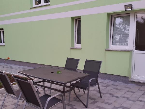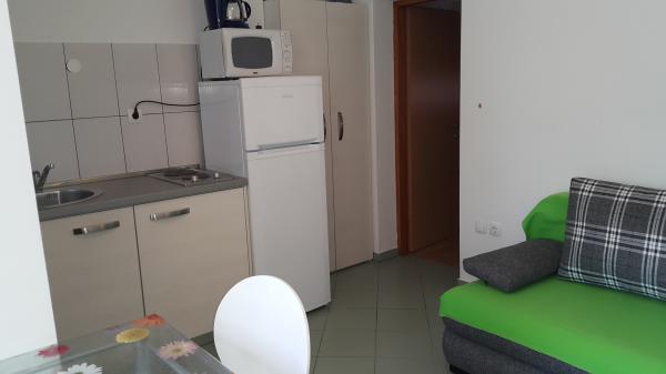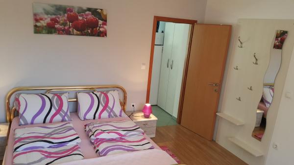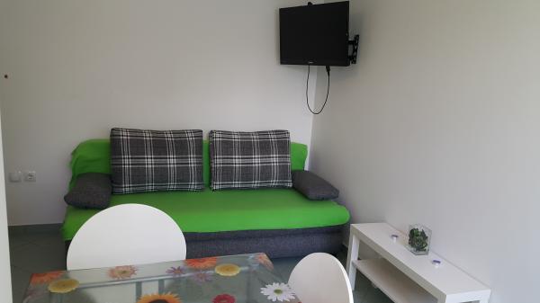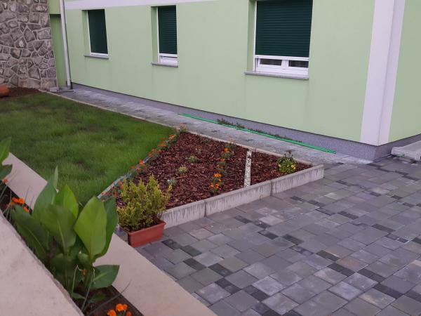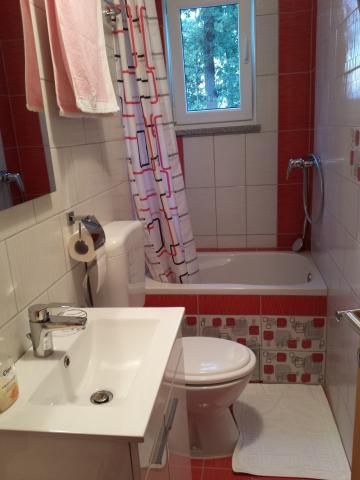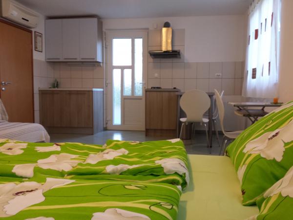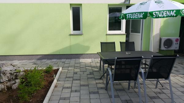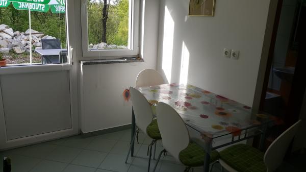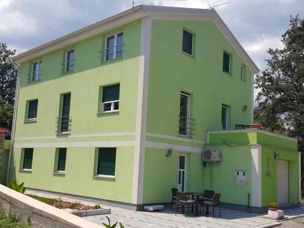 Apartments Carmen are located in the ground floor of the house and each has its own outside entrance, a terrace, which is available only to him. Modern décor, dominated by a pleasant green color tones of the facade, but the interior design. Fully furnished and well equipped apartments. It is 300 m above sea level, 8 km away from Opatija, and 8 km from the river. Orientation is from the sea to Slovenia, and his distance of 5 km from the sea gives guests very comfortable accommodation in complete silence and night alone. The house is located on a small hill next to the forest where you can walk and meet a squirrel or a woodpecker. Next to the house is a basket where you can play basketball or football with his family. The apartment is 500 m, approximately 15 minutes walk from the main road where the bus line every hour drive to the sea. In the center of Jušići has shops, cafes, pharmacy, hair and beauty salon, and about 3 km from Matulji towards the sea there is anything else you need.