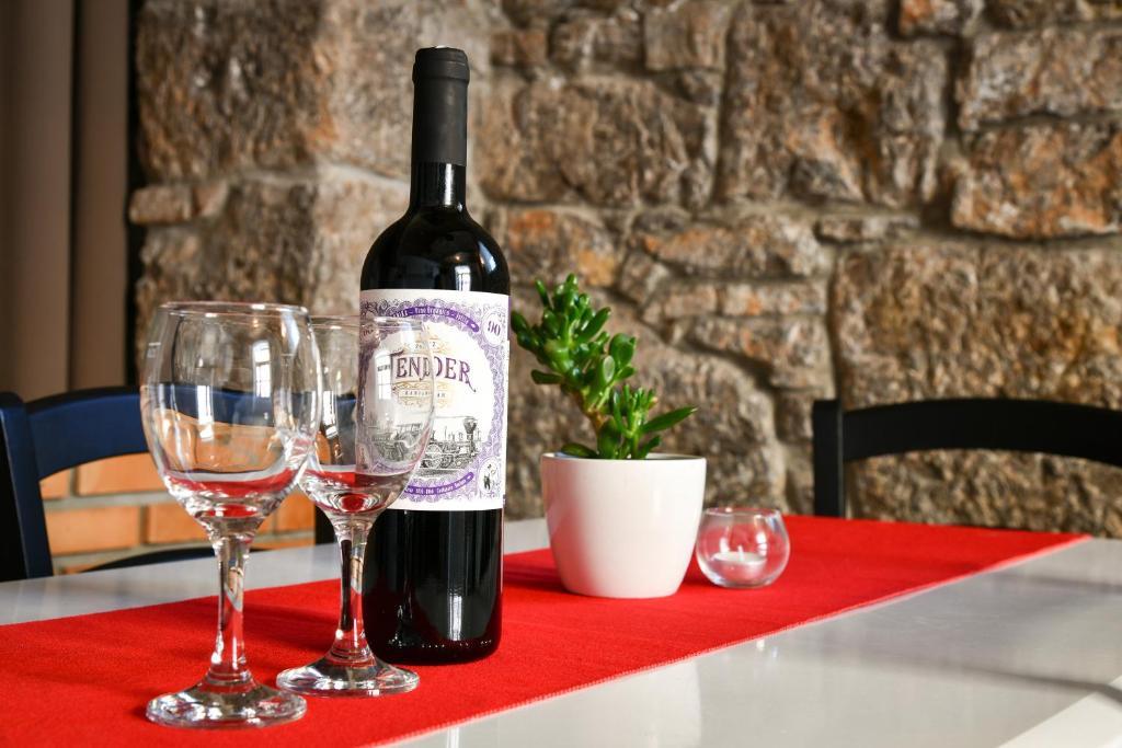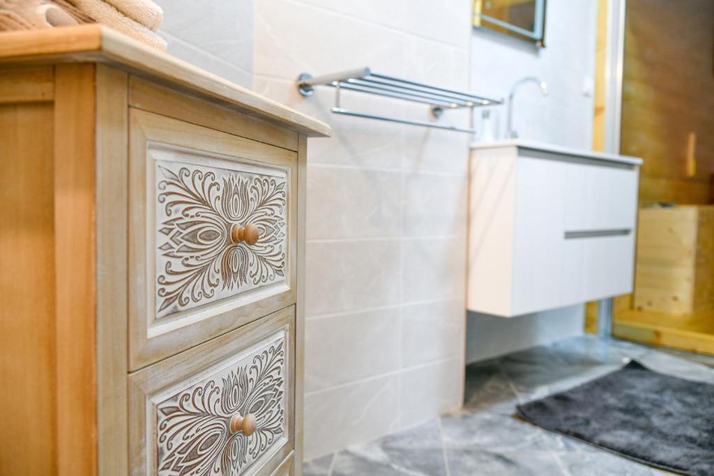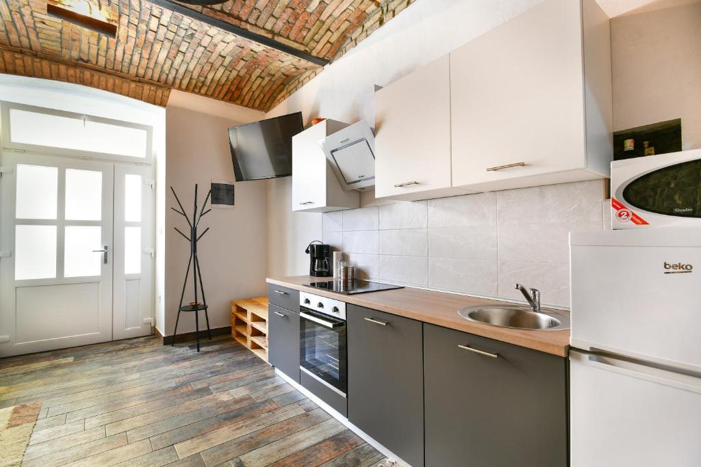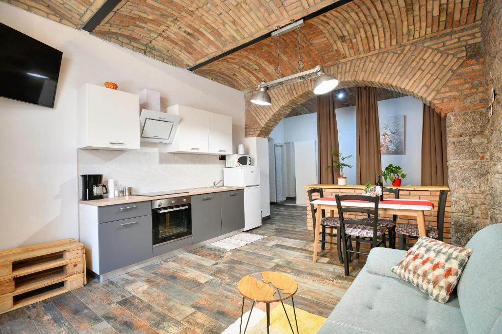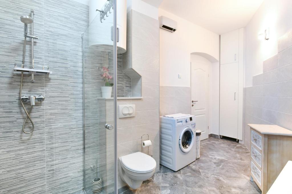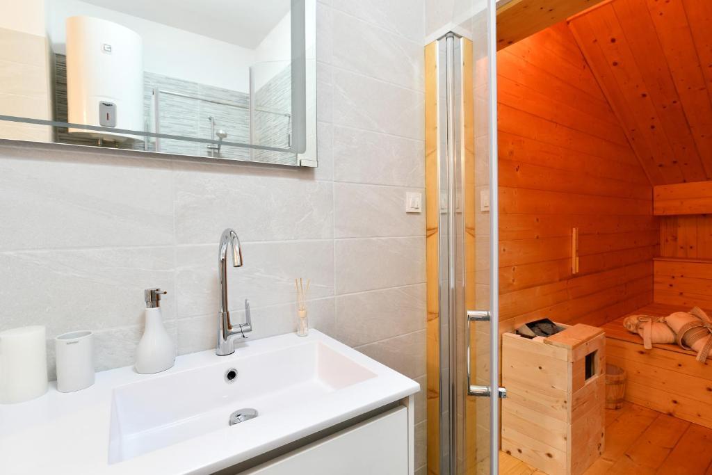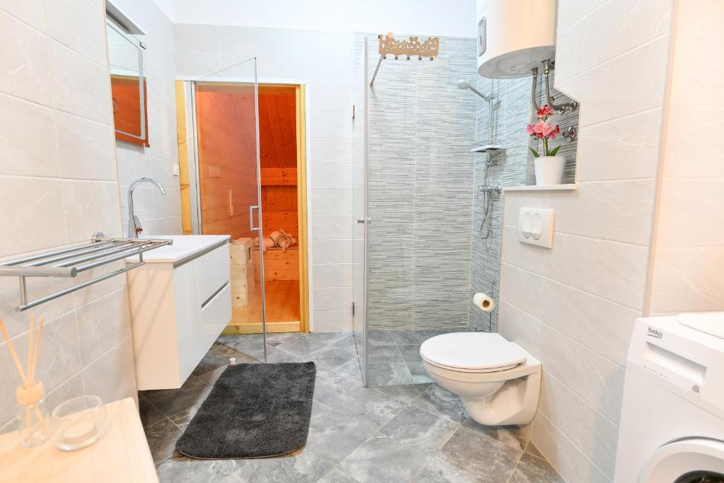 Modern apartment in a combination of brick and stone, in the center of Opatija, only 20 m away from shops, markets, banks. All essential amenities are within a 5-minute walk from the accommodation. The apartment is located in a quiet side street right next to the main street of Opatija. The beach is a 5-minute walk away. As part of the old Villa Rosenberger building, it has its own entrance. It consists of a partially separate bedroom, living room, kitchen and bathroom with sauna, terrace/parking.