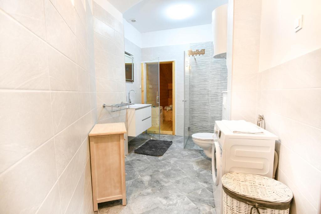 Parking is private and FREE, located in front of the apartment. The apartment offers a Finnish sauna (in the apartment)! Other amenities: air conditioning, heating, coffee maker, microwave, oven, fully equipped kitchen, dishwasher, washing machine, terrace set (table and chairs), shower cabin. Main bed 160x200 Extra bed: sofa bed 140x200, with mattress topper, for 2 people.