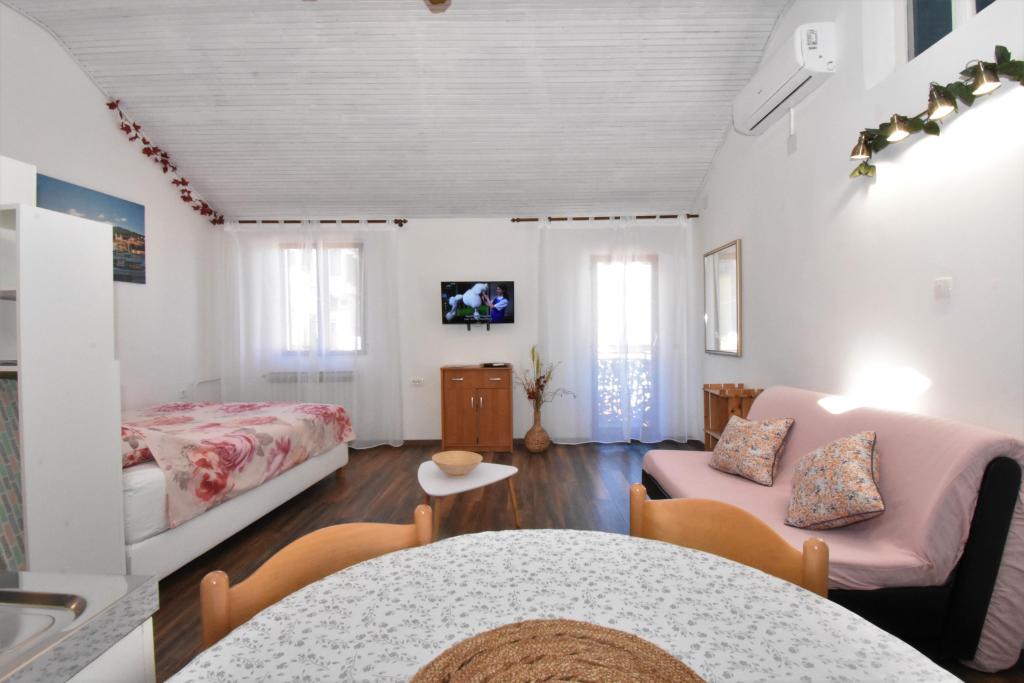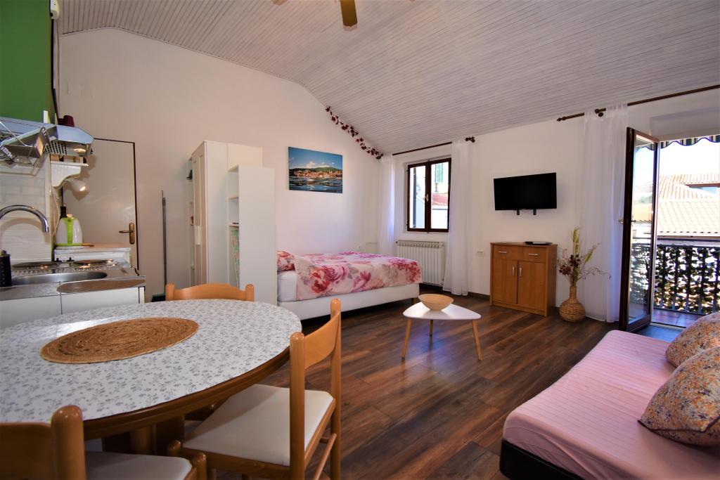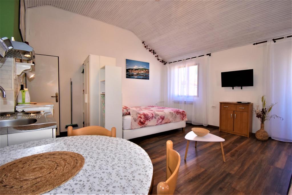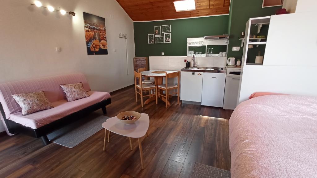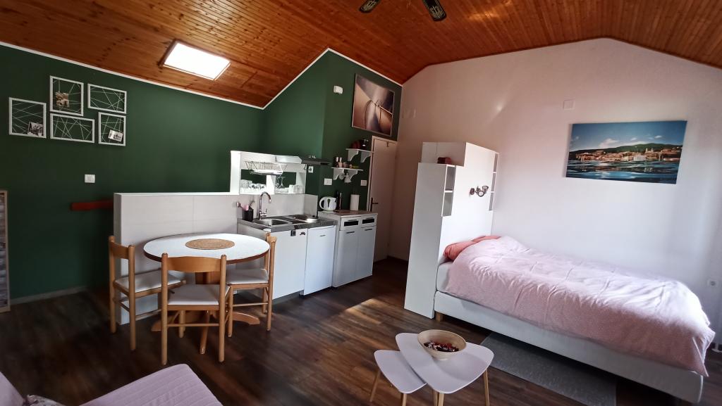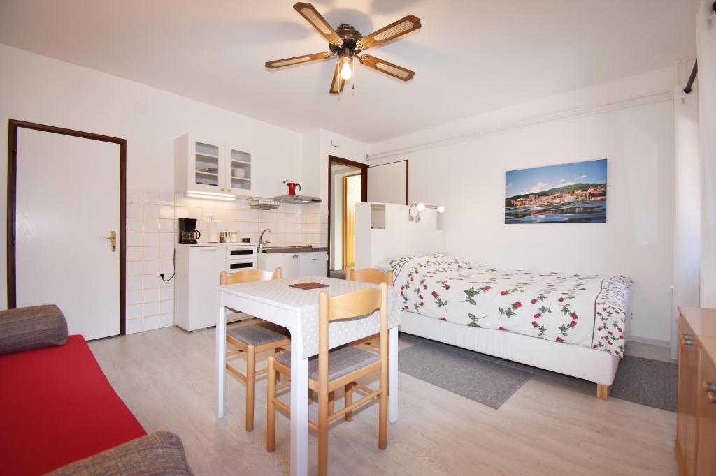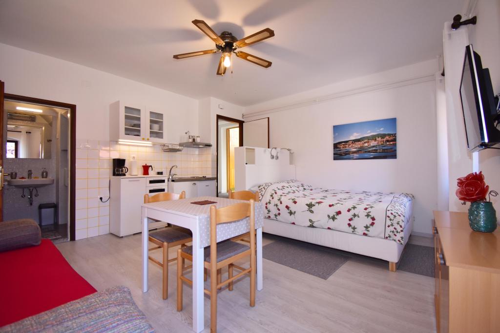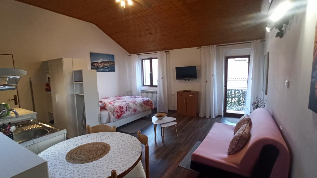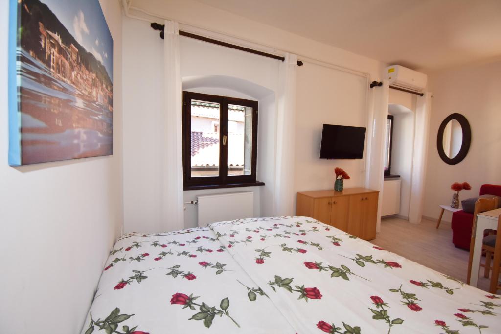 Two studio apartments, each with one double bed and one extra bed, are located in Volosko, a quiet part of Opatija, a former fishing village. They are only 50 m from the sea. In their immediate surroundings there are grocery stores and several of the best restaurants on the Opatija Riviera! Studio+1 ID:2710 consists of a room with a double bed and an extra bed (a sofa bed), a kitchenette - part of the room, a bathroom (shower/toilet) and a balcony with a view of the sea. Studio+1 ID:2711 has everything that Studio+1 ID:2710 has except for the balcony and sea view. Instead of a balcony, Studio Apartment 2 has an exit to the terrace (without sea view).