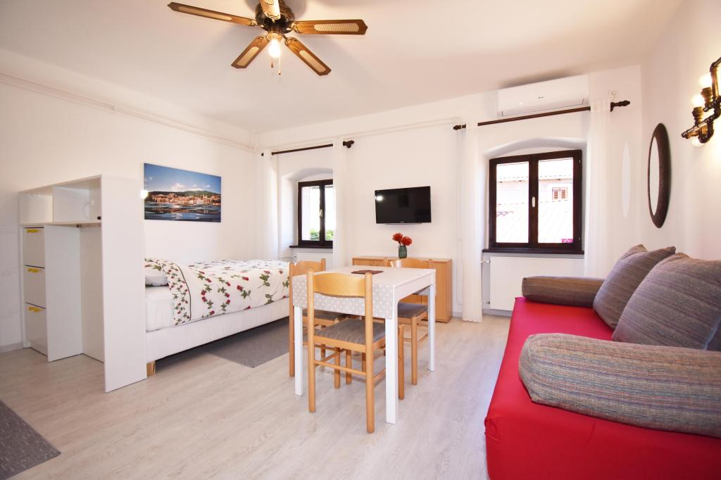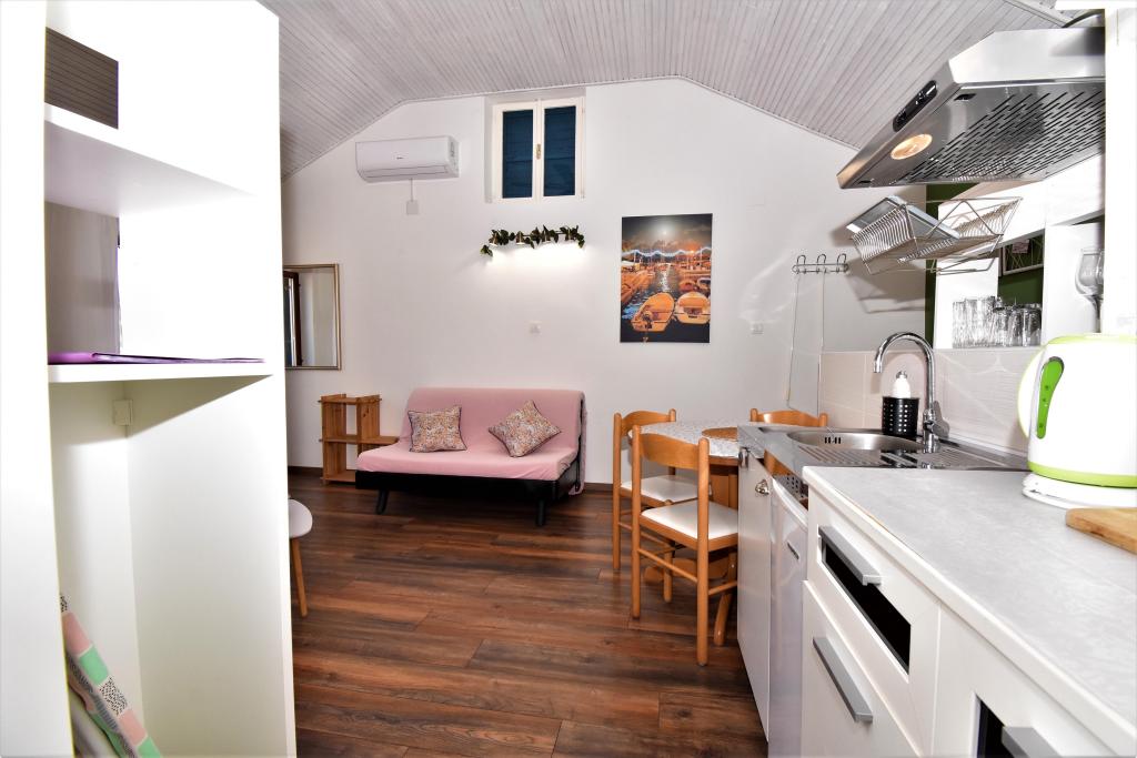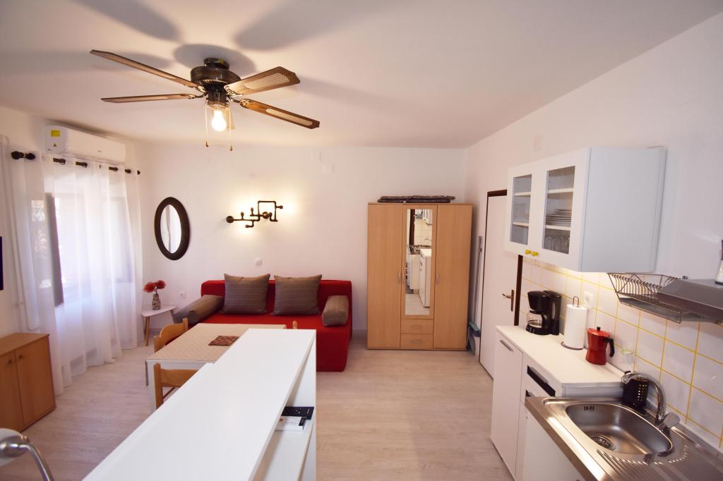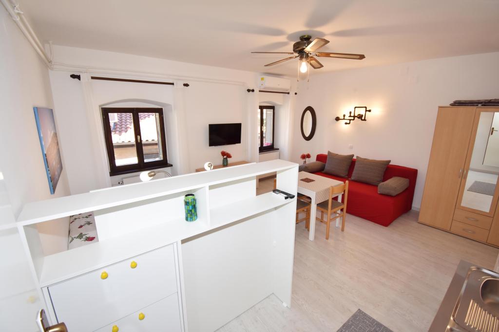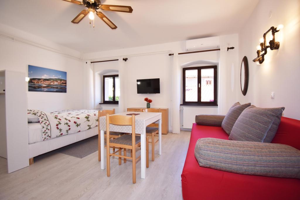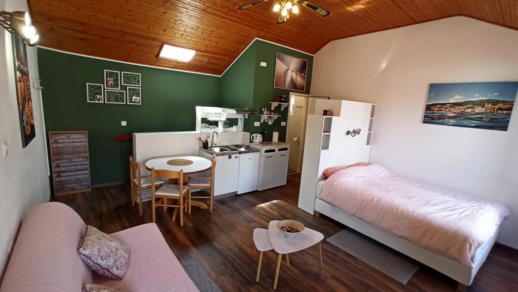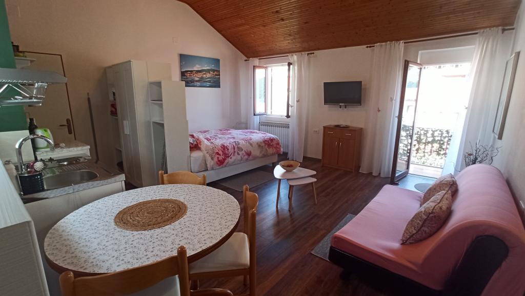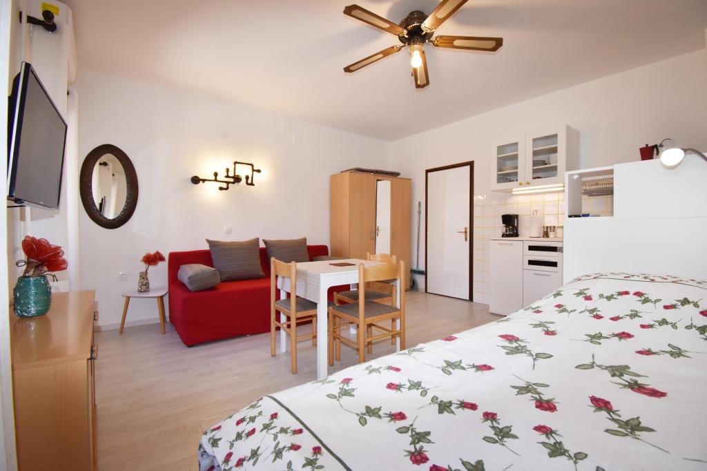 Two studio apartments, each with one double bed and one extra bed, are located in Volosko, a quiet part of Opatija, a former fishing village. They are only 50 m from the sea. In their immediate surroundings there are grocery stores and several of the best restaurants on the Opatija Riviera! Studio+1 ID:2710 consists of a room with a double bed and an extra bed (a sofa bed), a kitchenette - part of the room, a bathroom (shower/toilet) and a balcony with a view of the sea. Studio+1 ID:2711 has everything that Studio+1 ID:2710 has except for the balcony and sea view. Instead of a balcony, Studio Apartment 2 has an exit to the terrace (without sea view).