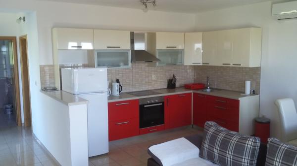 The apartment is located in a family house located in a very quiet part of town, not far from the center and the beach. The apartment is newly decorated and equipped with TV, air conditioning and internet. Suitable for families with children.