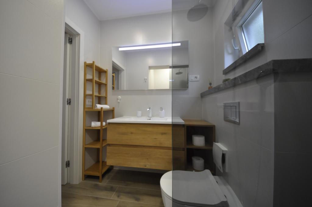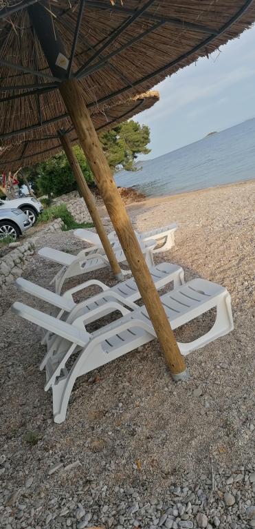 Newly renovated apartment in a quiet area, Perna, near Orebic. The apartment is located first row to the sea, pebble beach. According to the stunning part, there is Viganj, a favorite vacation spot for many surfers and lovers of sea sports. The terrace offers a beautiful view of the city and the island of Korcula. The apartment consists of two double bedrooms, small toilet, bathroom, kitchen and dining room. The terrace is 25m.