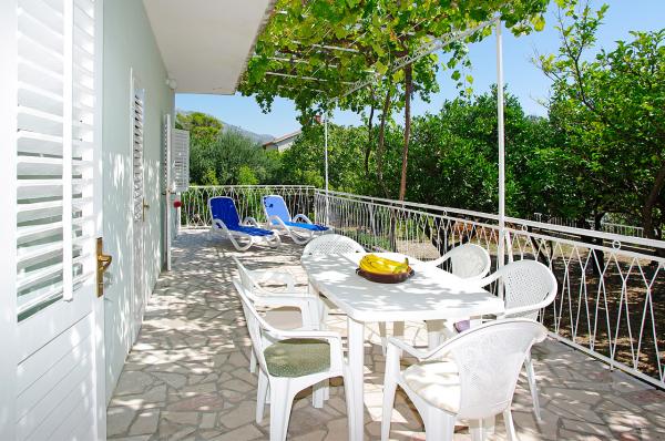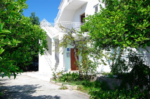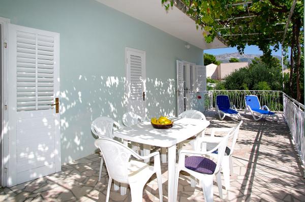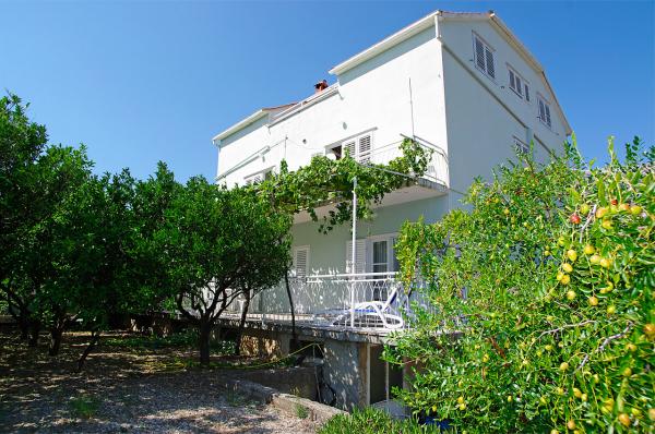 The family house Dužević is situated in the quiet, pedestrian zone of Orebic, only 30 meters from the nearest pebble beach and a romantic, 2 km long promenade. All apartments on offer have been constructed to have a separate entrance, terraces and the possibility of undisturbed enjoyment in the large citrus fruit garden, pomegranates, pine trees and figs. The north, spacious side of the yard (approx. 250 m2) is decorated with an old tree trunk with a crown height of 15 meters below which is a part of the parking lot for 8 cars. On the north side, on the ground floor, there are two small studio apartments. On the ground floor on the south side of the house there is an apartment for 4 persons with a large terrace under the vineyards whose shade is an ideal place for relaxation and small children. On the first floor of the family house Dužević lives a host family while on the second floor there is a large apartment for 8 persons, each of which has 4 rooms with sea view. The terrace within this apartment overlooks the Peljesac canal with cruisers and modern sailing boats.