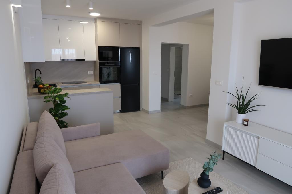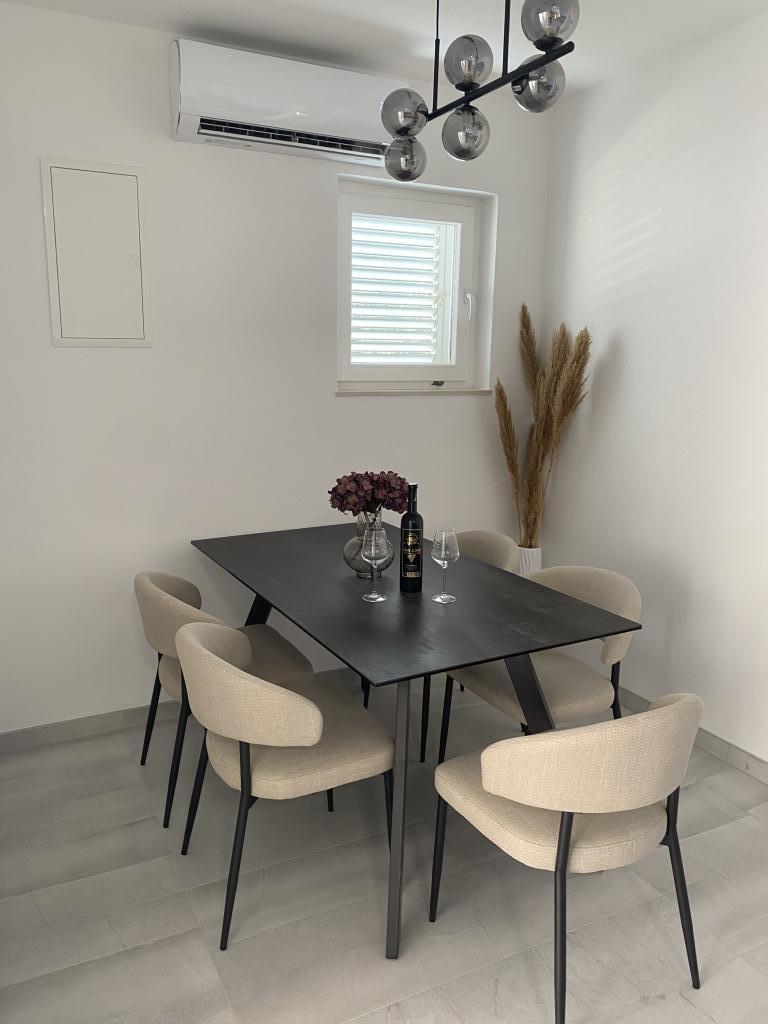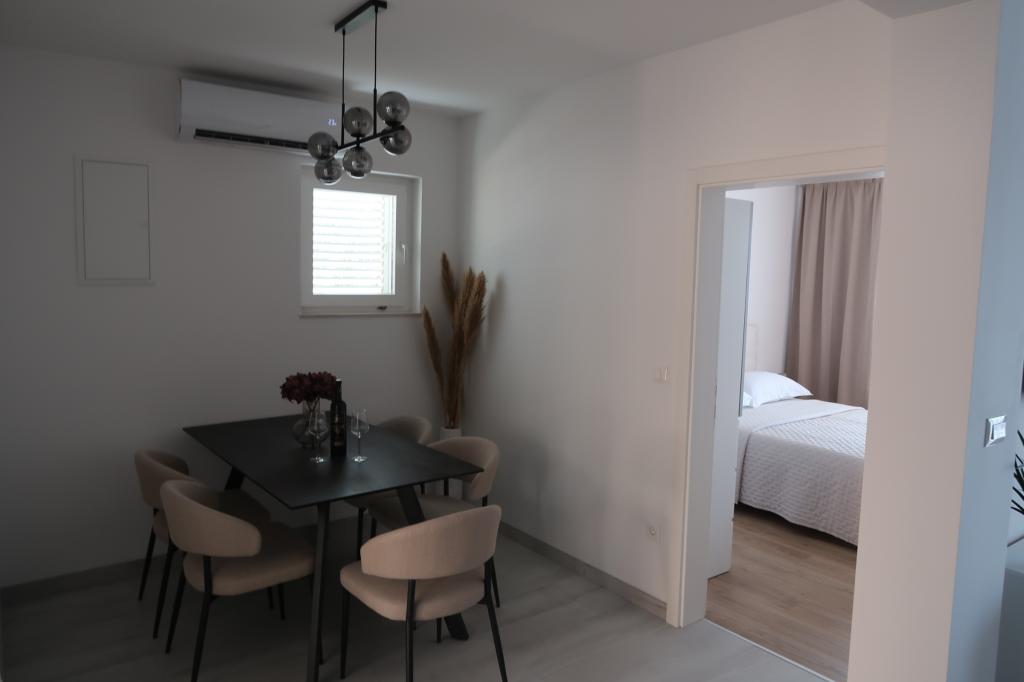 Fully equipped and newly renovated apartment. It is located 2 minutes walk from the beach and 5 minutes walk from the center. The first shop is 30m from the property. In the center there is a restaurant, cafe, fish market, market, bank, bakery,... The accommodation includes free parking and WI-FI. There is a fireplace on the property where you can grill. The apartment has 2 terraces, one in front of the front door with two armchairs for relaxing, and the other on the south side with a view of the sea.