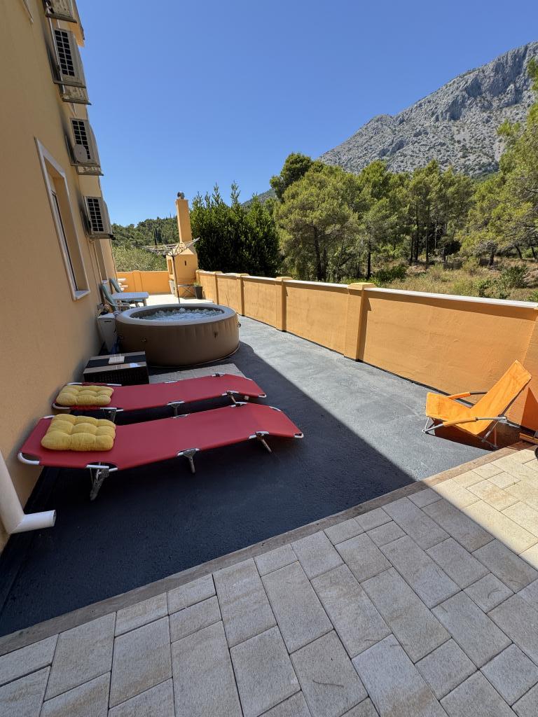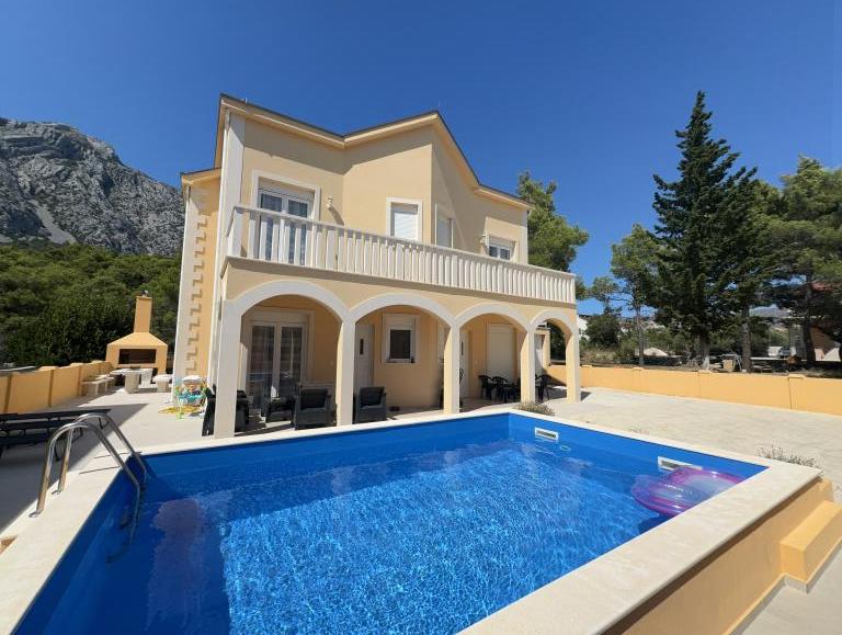 Fully equipped villa with pool and garden near the beach. Since you are the only exclusive guests in the villa, all the facilities within the villa are exclusively for you and you can use them unlimitedly. The residential unit for rent has a separate entrance, on the ground floor there is a living room, a kitchen with a dining room and a toilet, and on the first floor there are two bedrooms with a bathroom. In the master bedroom there is a 200x200 springbox bed and in the second bedroom there are two separate beds as well as an auxiliary bed for max. two people as well as access to the terrace with a view of the sea and Korčula. In the living room there are 2 couches that can be made into beds (2x2) for sleeping. The apartment has three air conditioners, which are located in each room, two on the first floor and one on the ground floor. In the garden there is more seating furniture, deckchairs, umbrellas, BBQ, swimming pool and Jacuzzi as well as a playroom for children. Also, if you come with a car, the Villa has several private parking spaces on the plot next to the villa, which is also owned. Facebook: Villa Sunshine Orebic