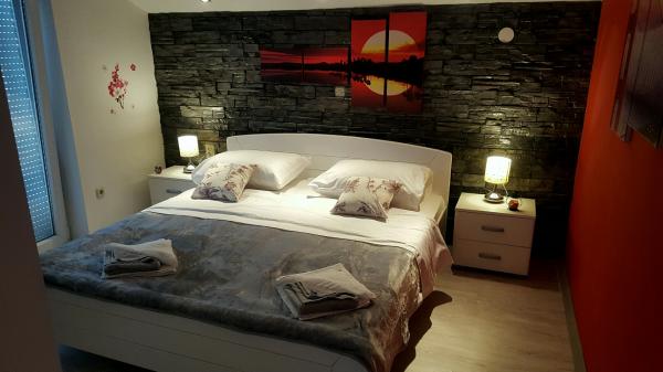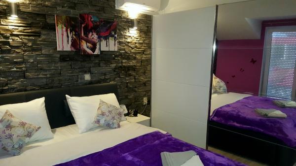 The apartment is located in a quiet area with no roads and away from the main Piaz 150 m from all vaznijh facilities within 1000m. apartment is modern decorated offers a lot of content from the fitness center table tennis Children's park for a game of outdoor grill and a rest area. Covered parking for a car every guest house offers 500m2 of different content on the use of guests. general house is surrounded by nature.
