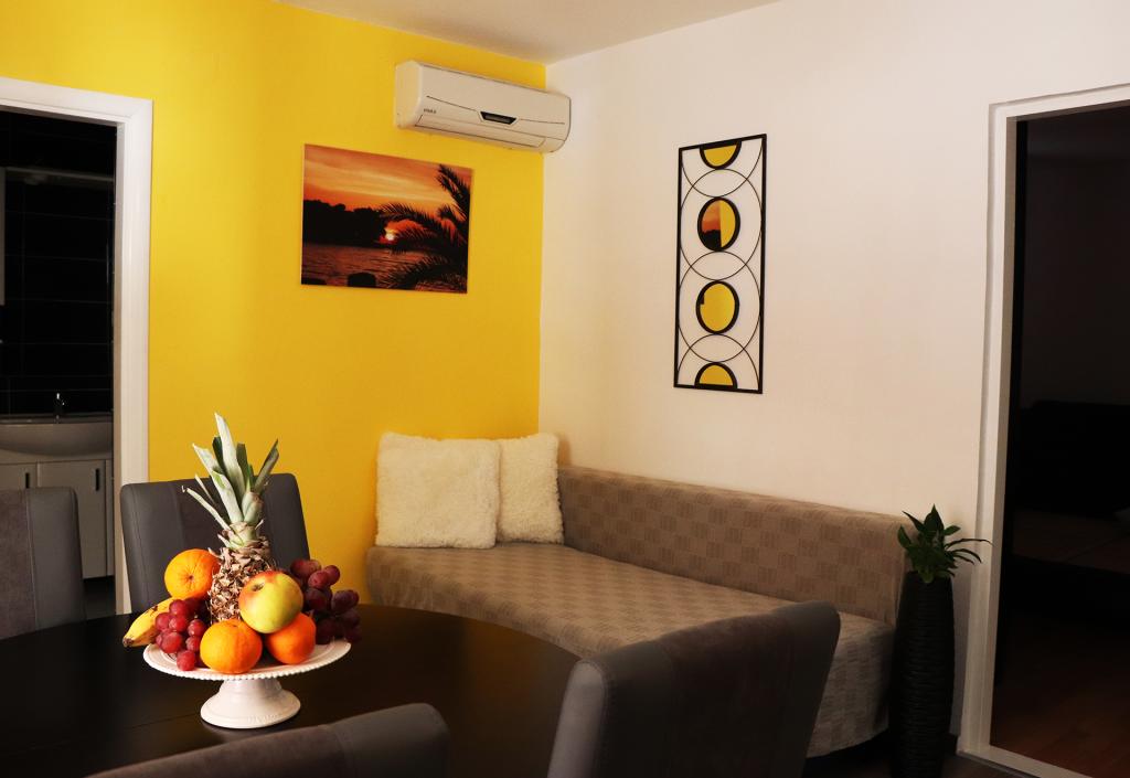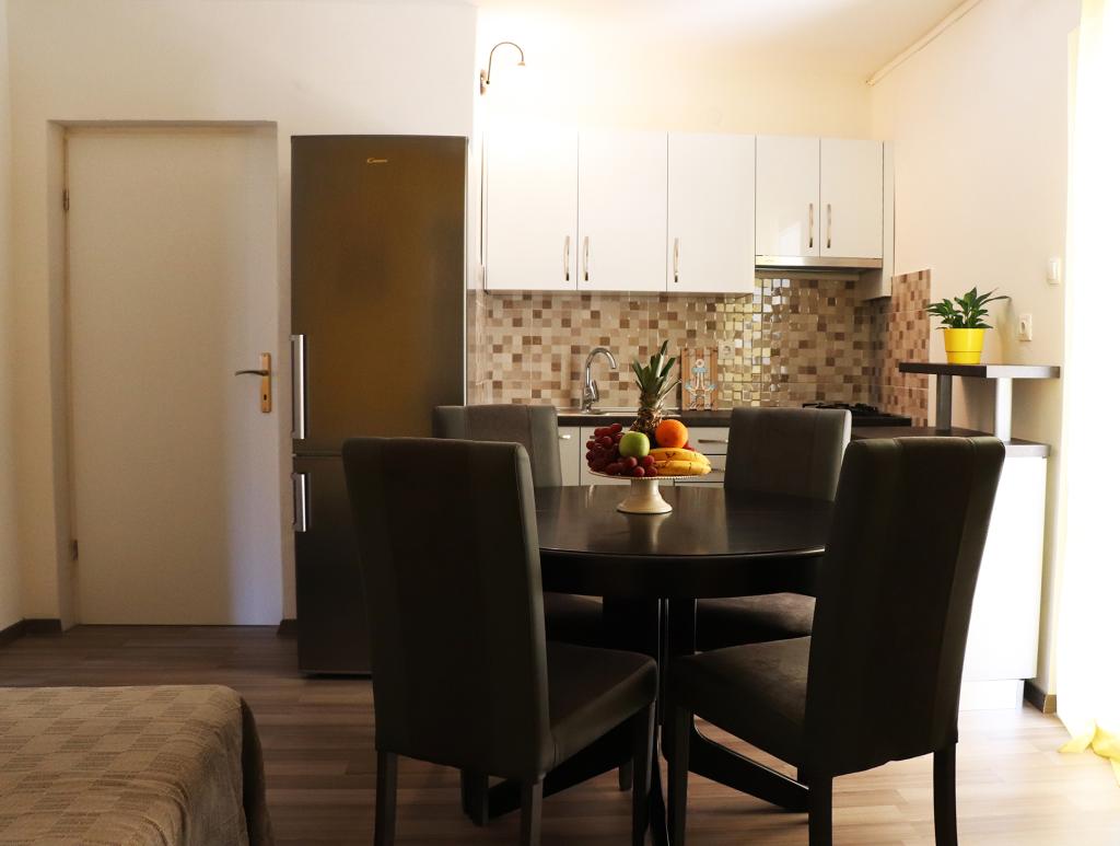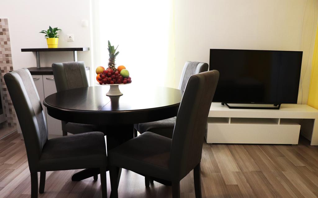 The accommodation is very good, everything is neat and clean. The apartment has everything you need for a stay. Friendly hosts. The apartment looks much better in person than in the pictures. In front of the apartment is a huge terrace suitable for smaller children but also for sitting since it is in the shade all day. I recommend it to families with small children, but also to everyone who wants to spend their vacation in excellent accommodation.