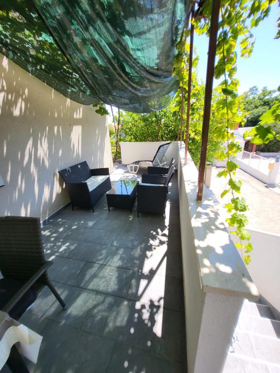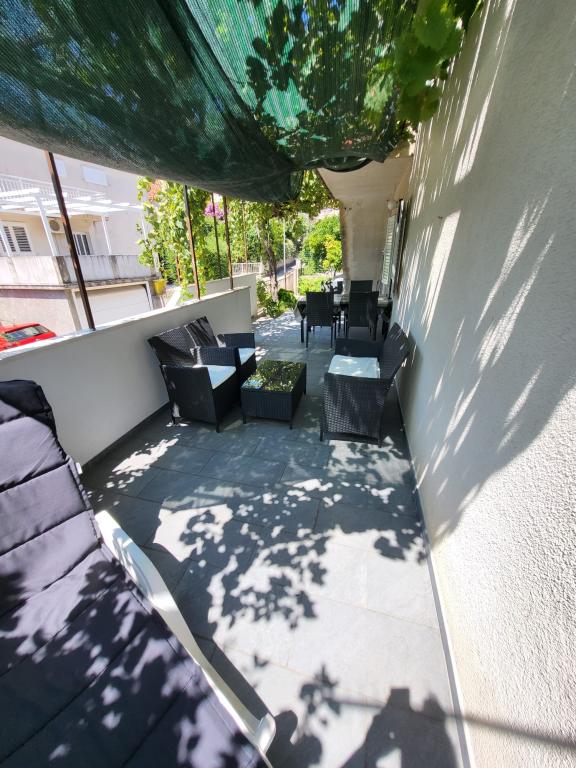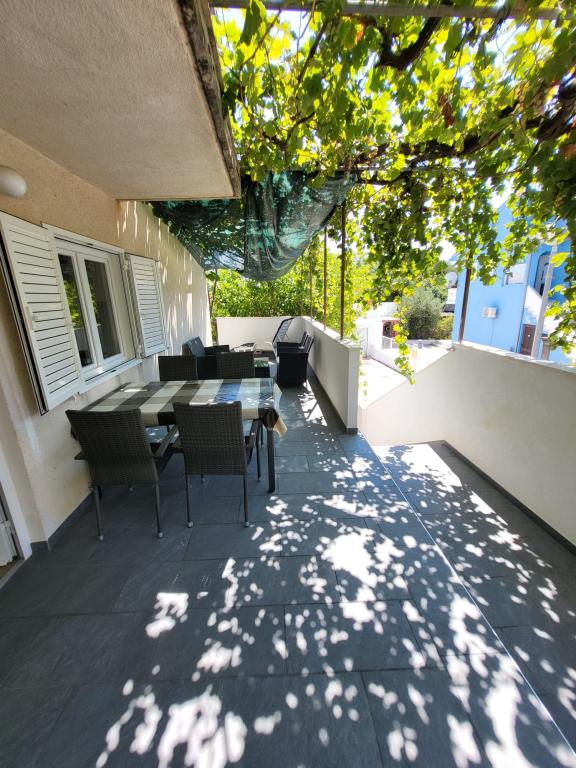 We are located in the very center of Orebić and all necessary facilities are accessible on foot. The beach is only a few minutes' walk away. At a distance of 50 meters there is a shop, bakery, pharmacy, cafe and fast food. And nearby there are also other facilities such as restaurants and other activities. This property with a garden offers air-conditioned accommodation with a balcony and terrace and a view of the sea. The apartment includes free parking, air conditioning, satellite TV and Wi-Fi. It also contains a fully equipped kitchen with all necessary accessories. The house is located in a quiet street, with a view of the sea, the garden and the street. Apartment AP1 DOWN: The apartment is 61 m2 + terrace 16 m2 + balcony 7 m2. The apartment contains a bathroom, 2 bedrooms, a dining room and a kitchen. Apartment AP2 UP: The apartment is 61 m2 + terrace 4 m2 + balcony 7 m2. The terrace and balcony are covered with awnings for the necessary shade and equipped with outdoor furniture. The apartment contains a bathroom, 2 bedrooms, a dining room and a kitchen.
