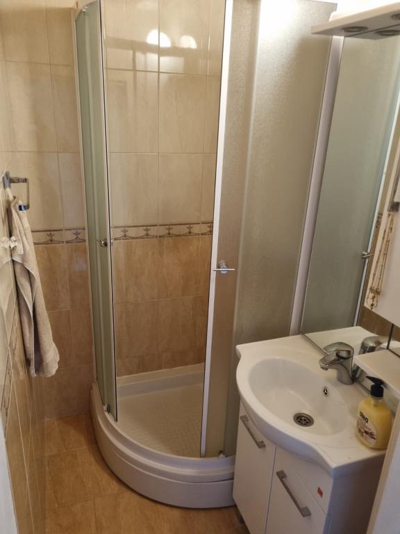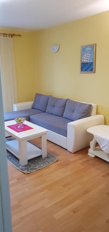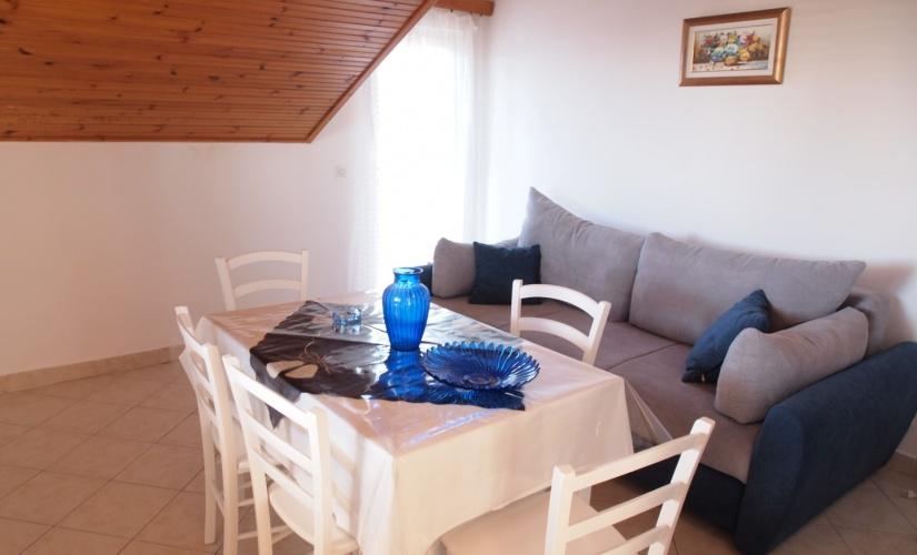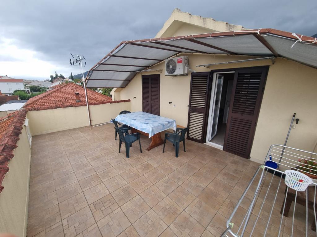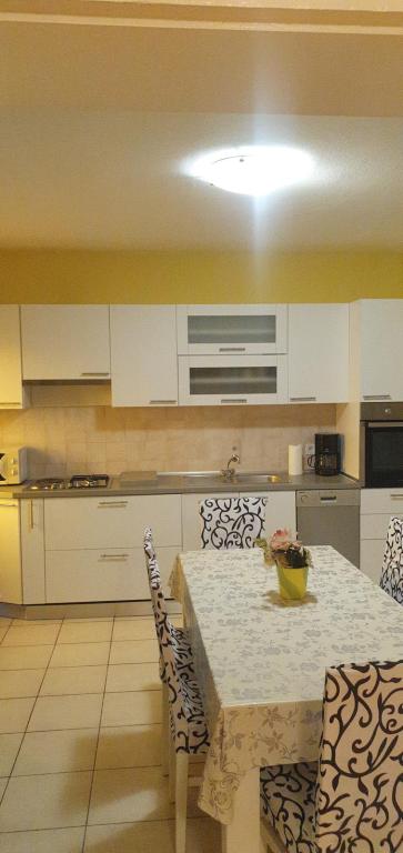 Fully equipped apartment with three bedrooms with double beds, three bathrooms, kitchen, living room, balcony and terrace. Air conditioning, parking, 150 m to the sandy beach, close to shops and cafes.