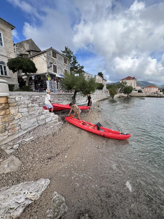 86 STEPS to the beach - down stone steps, next to olive and lemon trees and overlooking the blue sea - Beach lovers will enjoy. EXCURSIONS Korčula, Mljet and the surrounding islands are within easy reach (Orebić Port is only 250m away) Enjoy the flavors of Mediterranean cuisine and Italian Dolce Vita, (all within a 300-meter radius) - FREE: Sea kayaks - Stand Up Paddle Boards - Umbrellas and Beach Mats. - WELCOME to the very CENTER of OREBIĆ and don't miss the opportunity for a perfect vacation. AND AS PICTURES say more than words - LOOK AT THEM and judge for yourself. - APARTMENTS Fully air-conditioned - Wi-Fi - SAT-TV - Kitchen - Bathroom with shower - Private parking - Balconies with sun awnings - Bed linen and towels GRILL Our BBQ-Area and garden terrace surrounded by lemon trees is fully equipped and a great place where you can prepare fish or grilled meat.