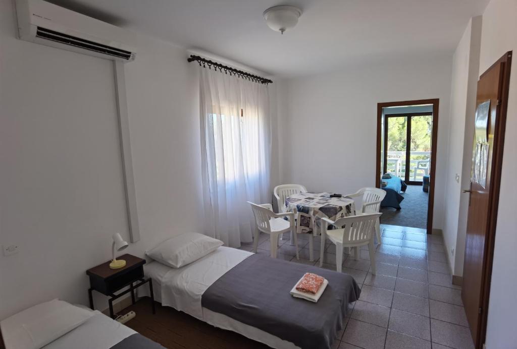 The accommodation facility is located on the last street on the western side of Orebić. Near the hotel complex, right next to a pine forest. The sea and public beaches are about 2.5 minutes' walk away. The coast with beaches is abundant in the shade of pine trees and Česmin, and there are also bars and restaurants. The public beach under the Grand Hotel with a cove and shallow sea with sand at the bottom is particularly attractive. All apartments have a balcony - a loggia where, during hot weather and complete silence without wind, the air circulates strongly and pleasantly. Apartments with extra beds "2+2" and "2+1" are suitable for families with two or one child. The "2+2" apartment is equipped with two and the "2+1" apartment with one air conditioner. WELCOME