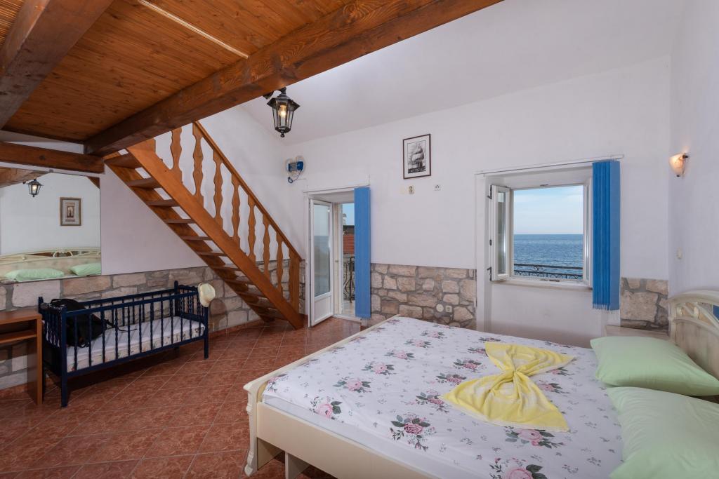Podobuce is a small town on the south side of the Peljesac peninsula (10km east of Orebic). This is where our old stone house is located, away from the city noise at the sea. Our small town has the church of Sv. Andrew was raised during the Republic of Dubrovnik. The tourist oasis and the crystal clear sea have a beautiful view of the open sea. The holiday house is located on the beach, 5m from the sea. The ground floor has a combination of kitchen and dining area and bathroom. On the first floor there is a double room, bathroom and balcony with sea view. On the second floor there is a double room, a bathroom, a gallery with two beds and a balcony overlooking the sea. The ground floor has a large terrace of 20m2 with barbecue. From the terrace directly descends to the beach, which makes it very suitable for young children. Welcome and wish you a pleasant stay.