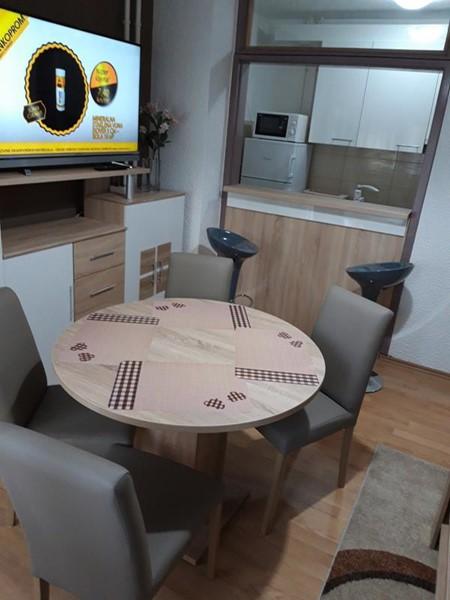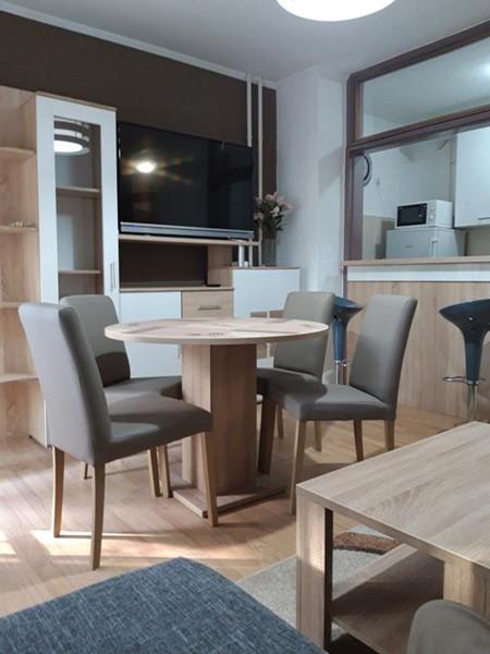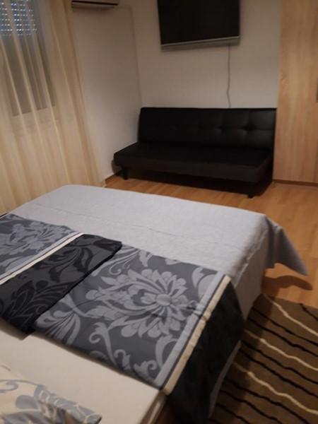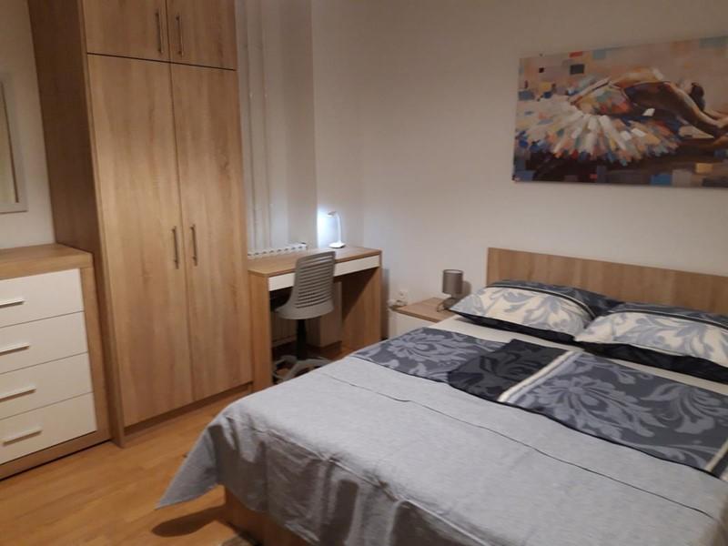 Apartment "Centros" is located in the top center of the city, in the immediate vicinity of the Osijek hotel. Newly decorated space, fully equipped. In the living room there is a sofa that can easily be converted into a double bed, a dining table, a large TV, a bar with bar stools. In the bedroom there is a double bed for two people and a sofa as an extra bed, wardrobes, chest of drawers, mirrors, TV, writing desk. In the kitchen there is a table, built-in hob and oven, refrigerator with freezer, dishwasher. In the bathroom there is a shower cabin, a washing machine.. The entire space is air-conditioned, with central heating and WiFi. The apartment is located in the city center, close to all important city facilities (theatre, cathedral, hotels, banks, promenade along the Drava river, restaurants, numerous cafes...).