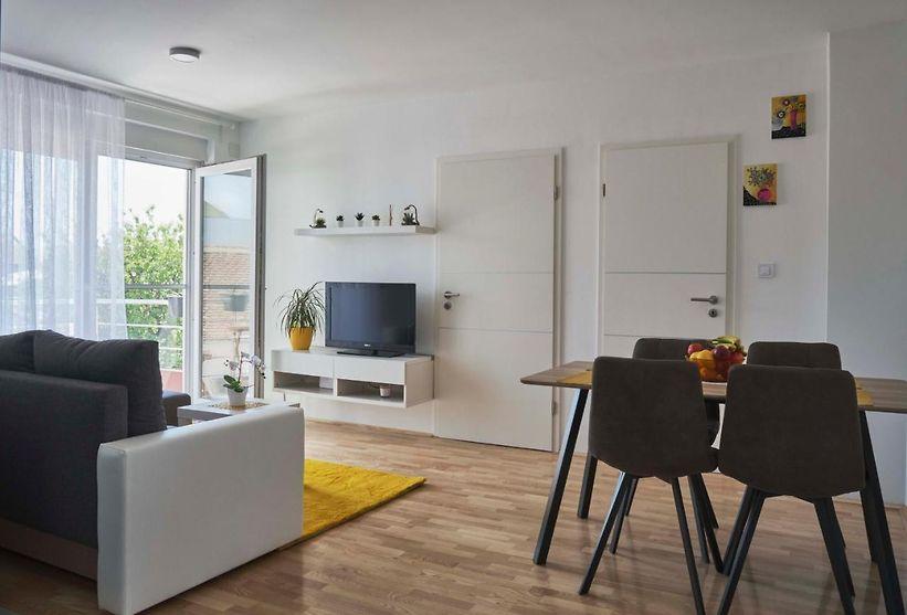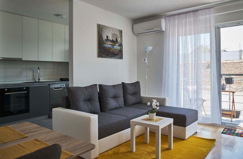 Apartment Lux in Osijek is a newly built private accommodation in the very center of the city. It is located in the courtyard of Ružina Street 21. The apartment is separated from the main road and guarantees peace and quiet from the noise of the bustling center. The apartment is intended for 2+2 persons. The apartment has one bed 160x200 cm and an additional pull-out bed in the living room for two people, air conditioning, TV, bathroom with shower and hair dryer, free WiFi and free private parking. The entire apartment of 36.8 m2 plus a 4 m2 balcony is at guests' disposal. Ružina ulica is an old Osijek street located in the very center of the city. As for amenities, there are two shops nearby that you can reach on foot. When you exit the main road entrance, turn left, after 130 m on the same side of the street, there is a grocery store open every day until 11 pm. When you exit the main road entrance and turn right, there is a bakery from 06:00 to 22:00 and a small shop 110 m away on the other side of the street, open Monday - Saturday 20:00