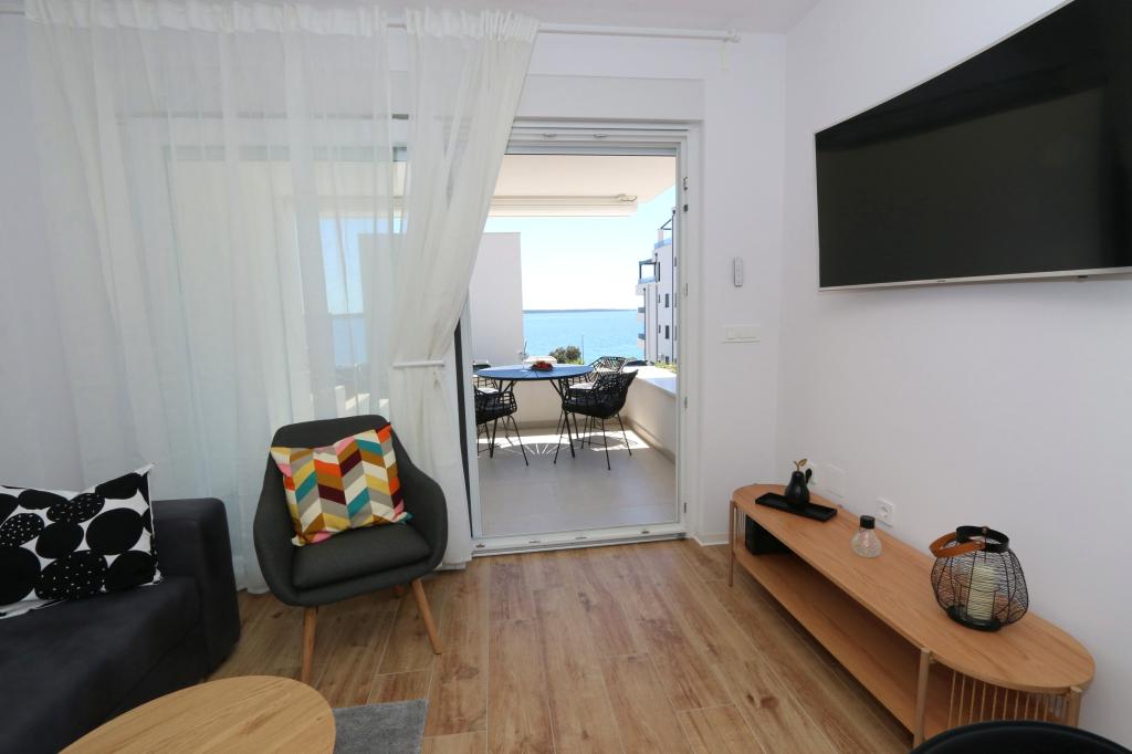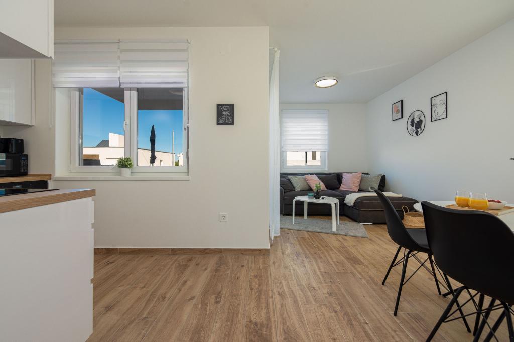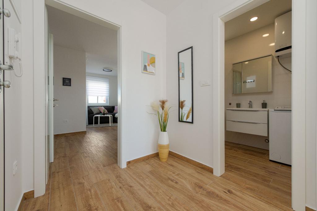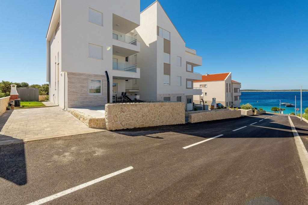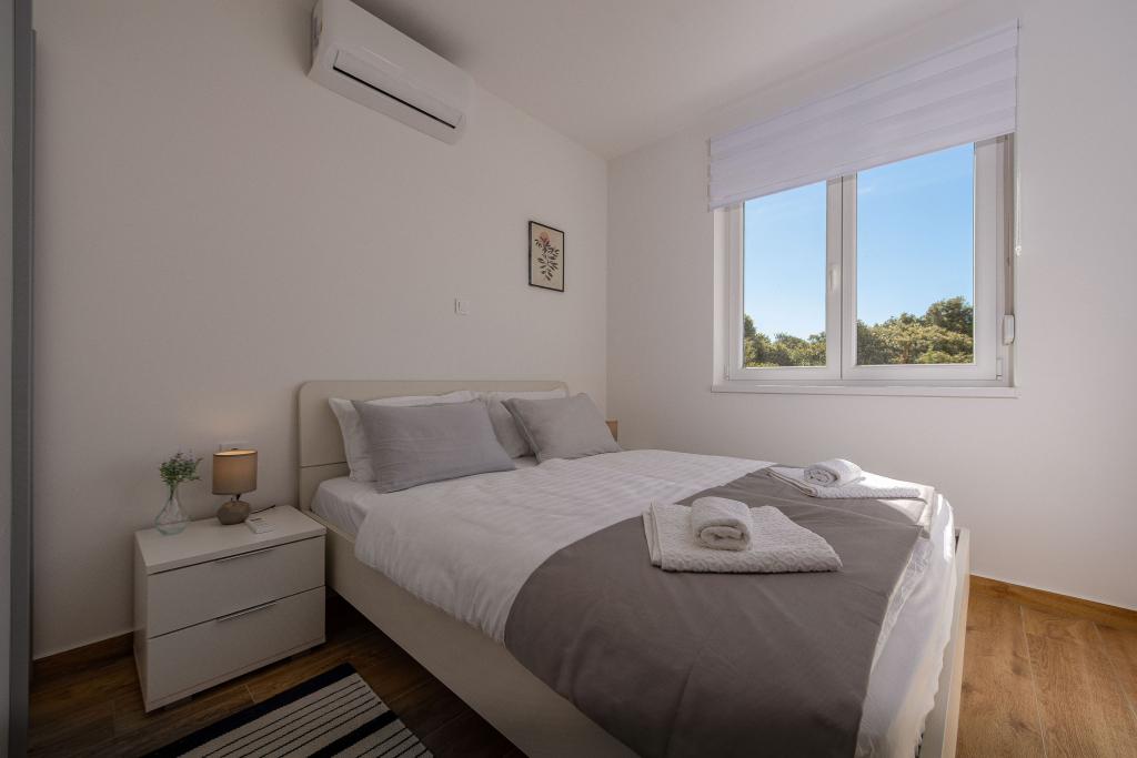 Dolphin view with a pool by the beach is a modernly furnished apartment with a private pool overlooking the sea for your use only. It is located in a quiet part of Mandre on the island of Pag, only 40 m from the first beach. Dolphin view apartment consists of two bedrooms with double beds, a bathroom with a walk-in shower, a fully equipped kitchen, a living room and a dining room. The apartment has 2 parking spaces in the yard as well as a furnished terrace with a swimming pool and a garden with a garden and a grill. The terrace offers a beautiful view of the sea, and dolphins are our frequent visitors. Dolphin view II consists of a bedroom with a double bed and a second bedroom with two single beds with the possibility of joining them into a double bed, a fully equipped kitchen, a living room and a dining room. The apartment has 1 parking space, a furnished terrace with a swimming pool just for you. Restaurants and shops are only a 10-minute easy walk from the apartment in the center of the town where you can find everything you need for a pleasant vacation.