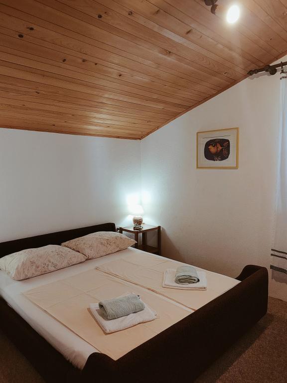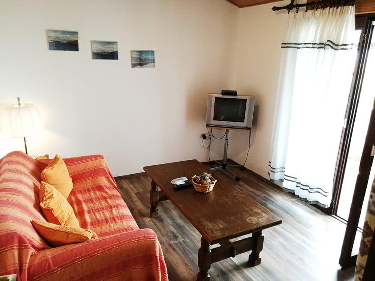 The apartment is located on the 1st floor of a family house in Mandre, on the island of Pag. It consists of two bedrooms with double beds, a living room, a kitchen, a bathroom and a small toilet. The apartment also has a 7 m2 loggia with a view of the town, the sea and the islands of Maun, Skrda, Olib and Silba. In the courtyard there is a fireplace, a table and chairs, a shower and deck chairs for an afternoon rest away from the daily hustle and bustle of cafes and beaches. We are 200m from the sea and parking is next to the house.
