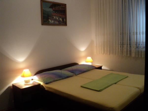 The apartments are located in the center away from the store about 50 m and 100 m. Beach Apartment 6 +1 has three bedrooms, lounge, kitchen (fridge, freezer, microwave, stove, coffee maker) bathroom (shower and tub) , balcony and air conditioning (not price), first floor. Apartment 4 +1 has two bedrooms, living room, kitchen (refrigerator, freezer, stove, microwave, coffee maker), bathroom (shower) and terrace (ground floor). Linen included. Grill, Sat TV, parking. City has a long promenade along the sea, suitable for cycling, skating and walking. Possible rent boats and scooter in mjestu.Apartmani are spacious and offer the convenience of your own home.