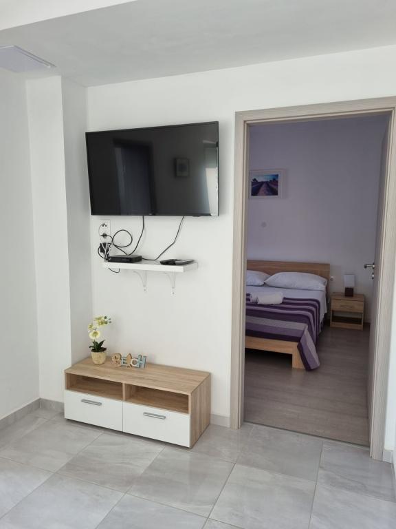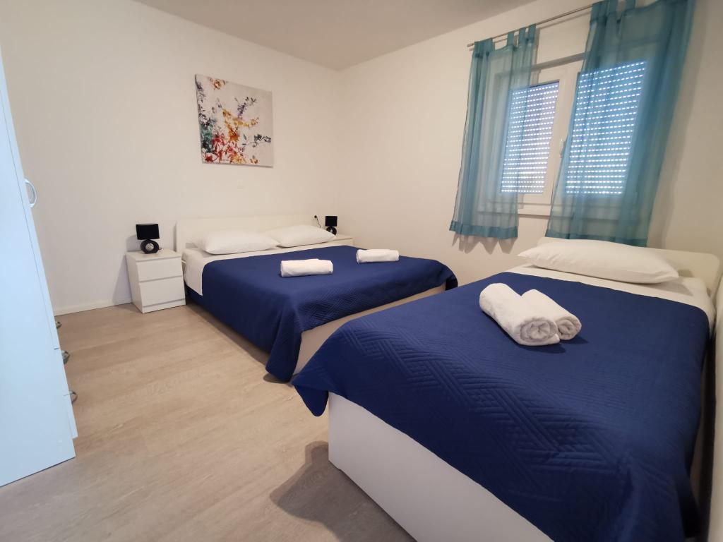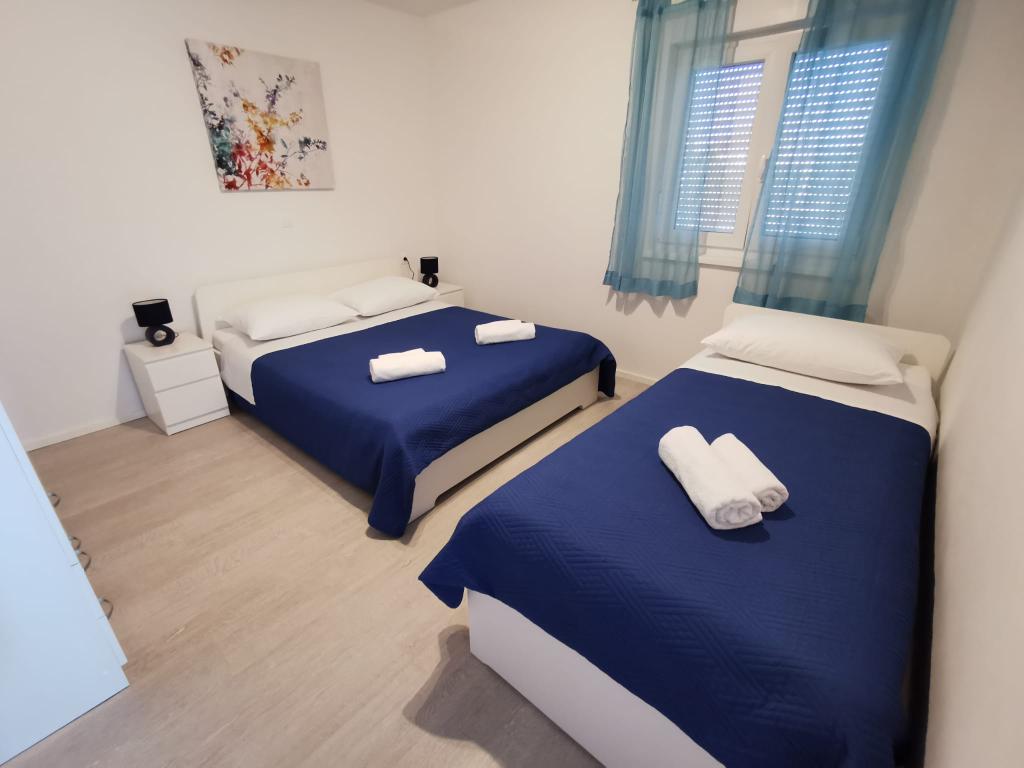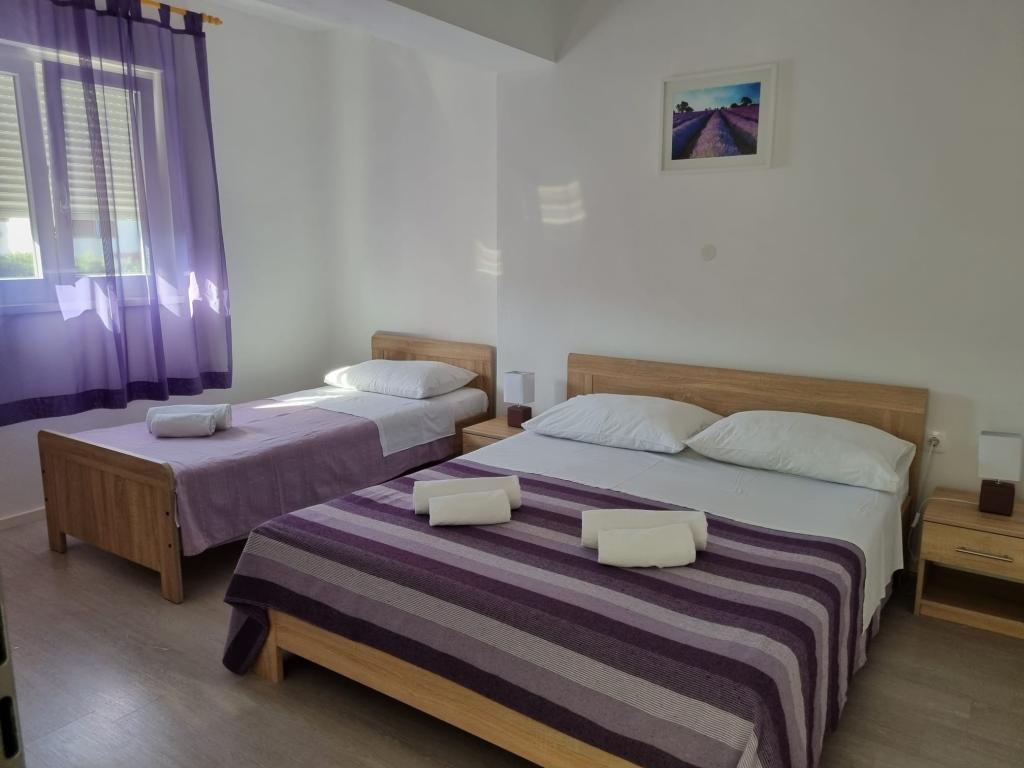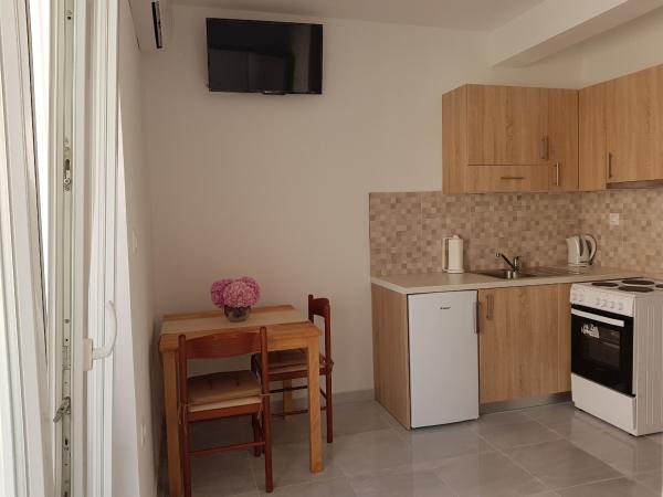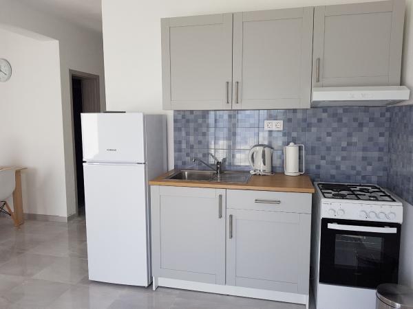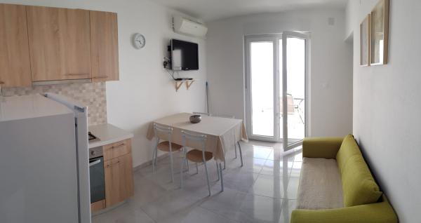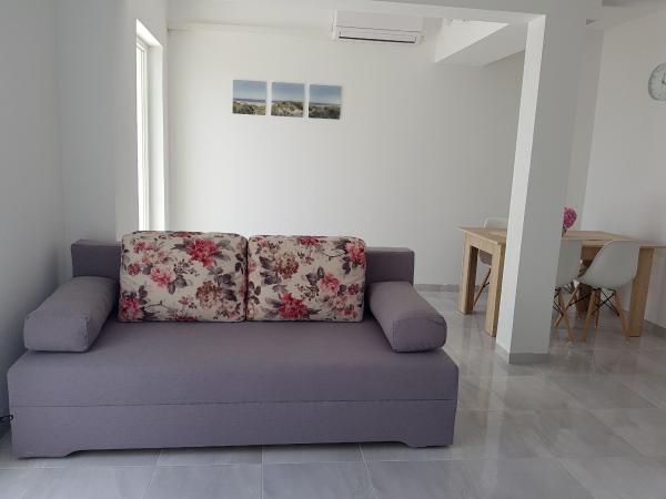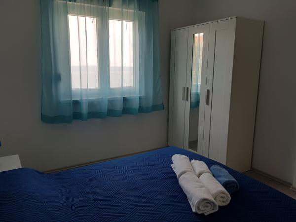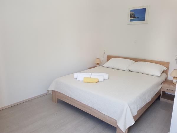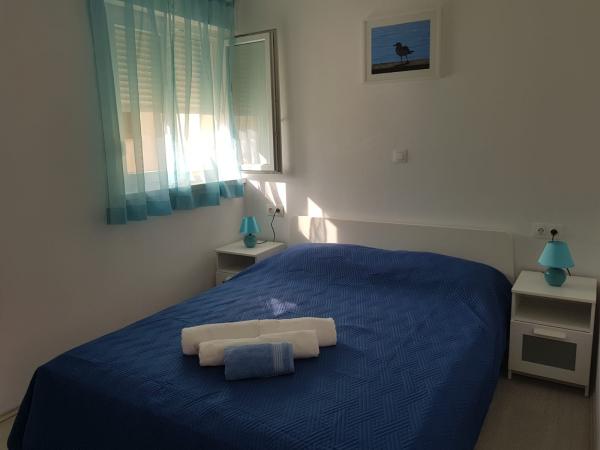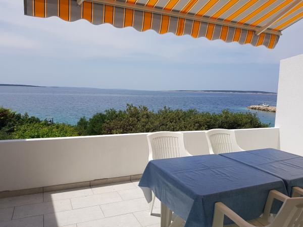 Our apartments are located right by the sea, in the center of Mandri, on the island of Pag. All apartments are located on the 1st floor of our family house, and therefore offer a beautiful view of the sea. The apartments are newly renovated, and equipped with internet, air conditioning, TV/SAT, fully equipped kitchens, and as an addition, you can lower mosquito nets on all windows along with the shutters, as protection against mosquitoes. Each apartment has its own parking space, and all guests can use the barbecue in the garden. Through our yard, you go directly to the beach, so all you need for a pleasant vacation in the sun, is a towel over your shoulder! We are looking forward to your arrival!