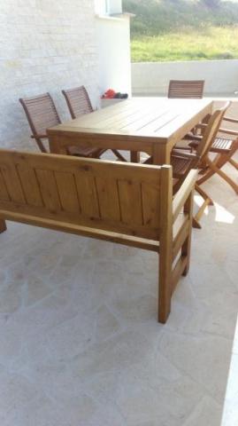 The apartment is located on the ground floor in a quiet location without traffic. 10 minutes walk to the beach. From the terrace you have a beautiful view of the sea. Great for families with children. 20 minutes from the city center where available all need (restaurants, bars, shops, pharmacy, disco). The apartment is available for all the normal life you only get the food. Linen is included in the price, towels, kitchen towels. The rooms are separated, one with a double bed in the other three beds. The apartment is newly decorated.