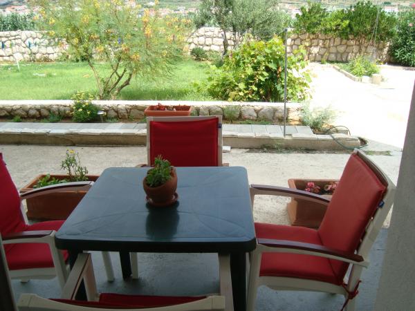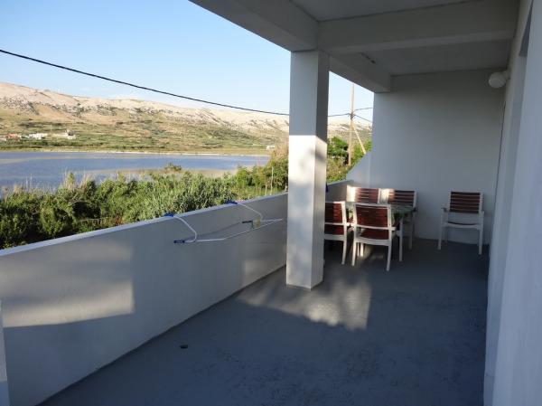 Fully equipped apartment in a quiet area of Pag, located next to the sea with a terrace that overlooks the sea. The facility is located 5 minutes walk from town and beach