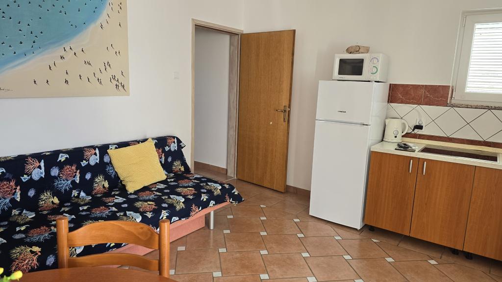At check-in you will be greeted by receptionists, a decent and discreet family located on the ground floor of the house and you can always count on their help. If you come by car, you can park for free in front of the house. Also, there is wireless Wi-Fi in the house, free of charge. The house is located in a quiet street, 100 meters from the sea. No noise is heard from the beach and nearby cafes. Pag offers countless places for entertainment and cultural events (the famous Pag Summer Carnival is something you should not miss, as well as the Pag Cultural Summer), and excellent local cuisine and wine. The world-famous Pag sheep cheese is especially excellent, which can be tasted in every restaurant on the island. Not to mention the fish and the world-famous Pag lamb (due to the high concentration of salt in the grass, Pag sheep have almost no fat). The town of Pag is medieval, almost preserved, so you can enjoy sightseeing, admiring the beautiful handmade lace that is made with a needle and is registered with UNESCO.